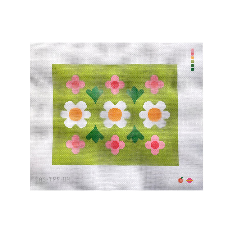 This hand painted needlepoint canvas by Saturnalia Stitching features a simple floral design.