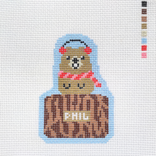 This hand painted needlepoint canvas from Saturnalia Stitching features the famous groundhog Punxsutawney Phil who is tasked with predicting spring each year.