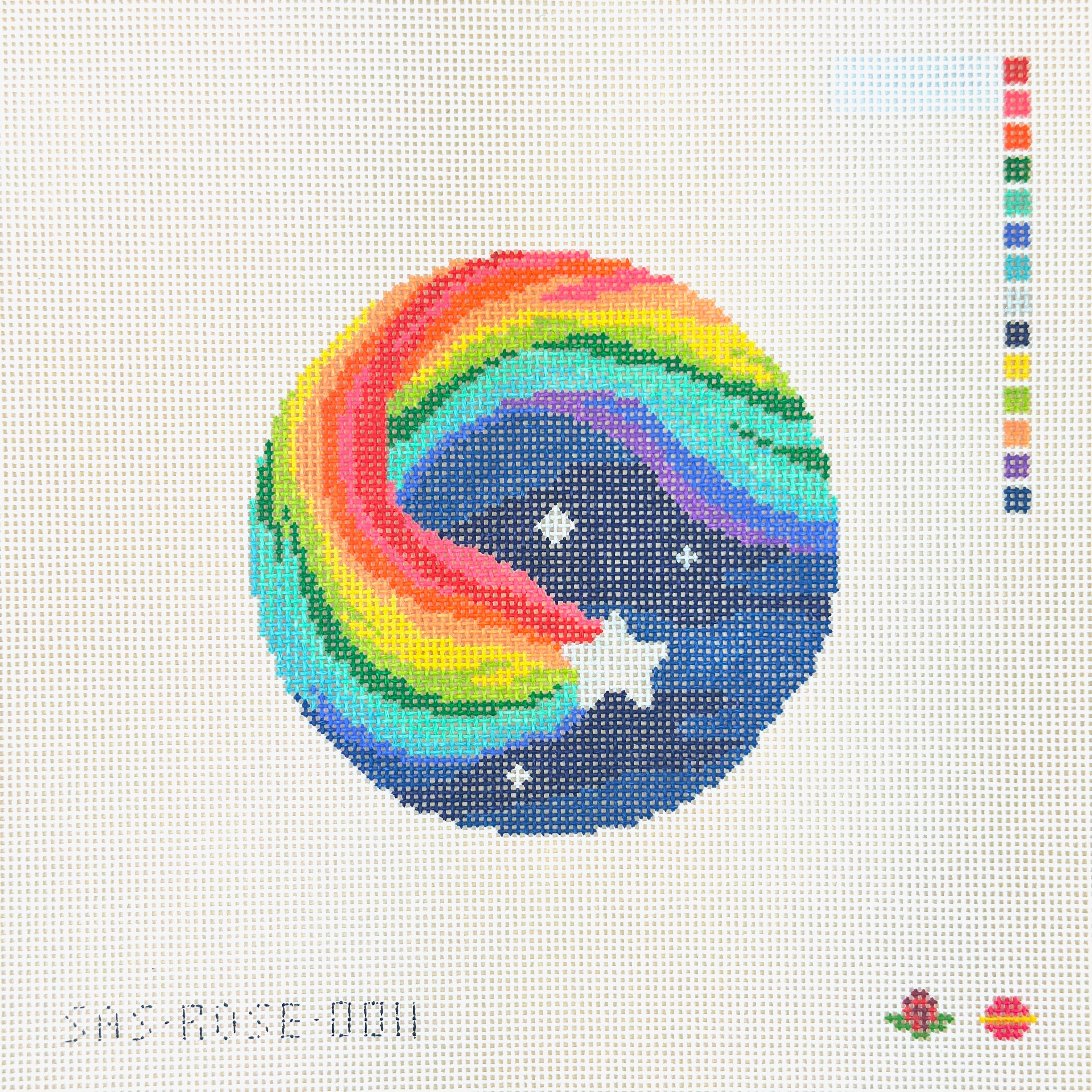 Saturnalia Stitching Rose Acolyte Rainbow Star Round Needlepoint Canvas