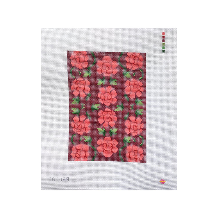 This hand painted needlepoint canvas from Saturnalia Stitching features a floral rose pattern. It is designed to be finished into a case for an e-reader.