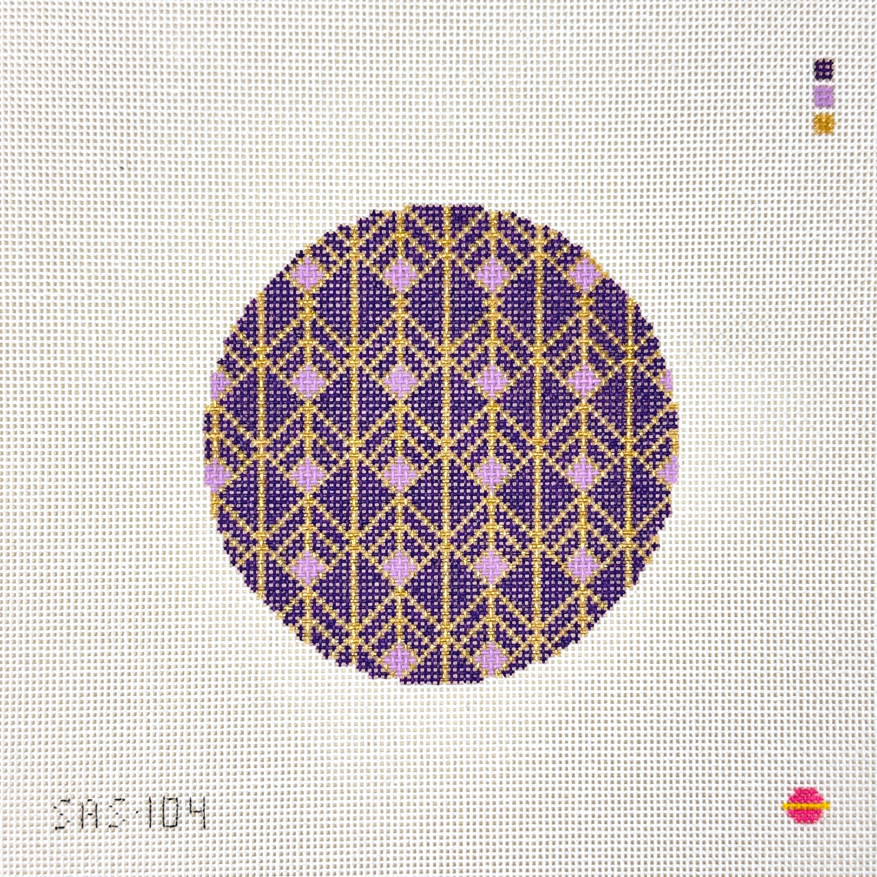 This is a hand painted needlepoint canvas from Saturnalia Stitching. It features a painting of a regal design.