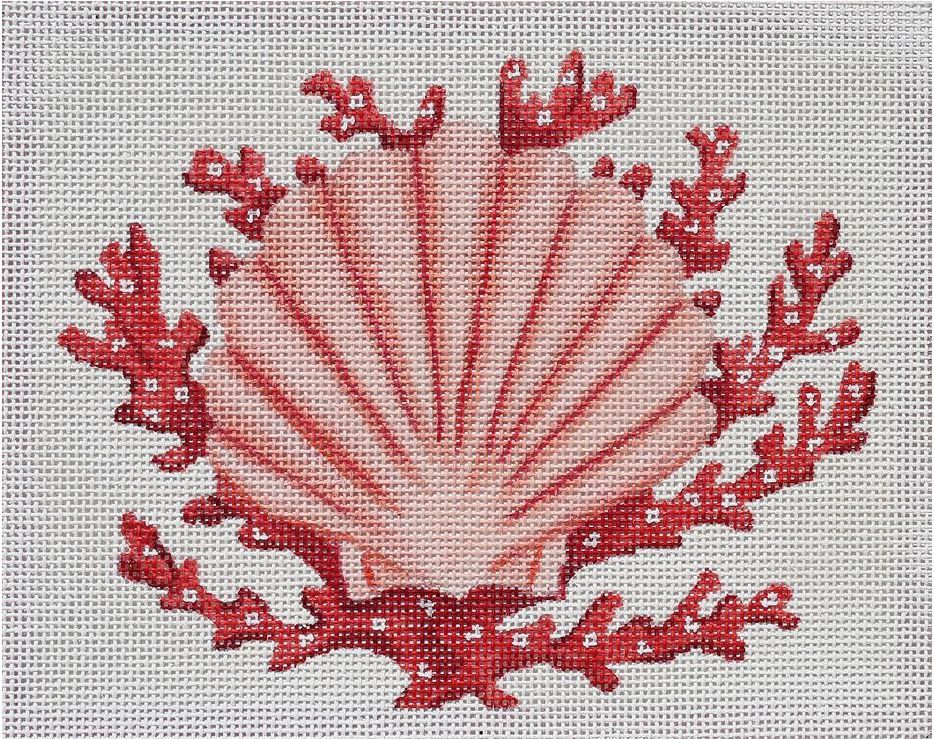 Kate Dickerson Needlepoint Collections Scallop Shell with Coral Needlepoint Canvas