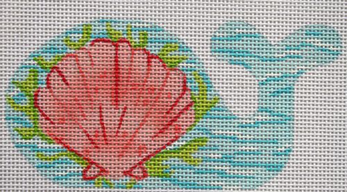 A beautiful hand painted needlepoint design from Kate Dickerson Needlepoint Collections. Scallops & Seaweed on Sea Whale