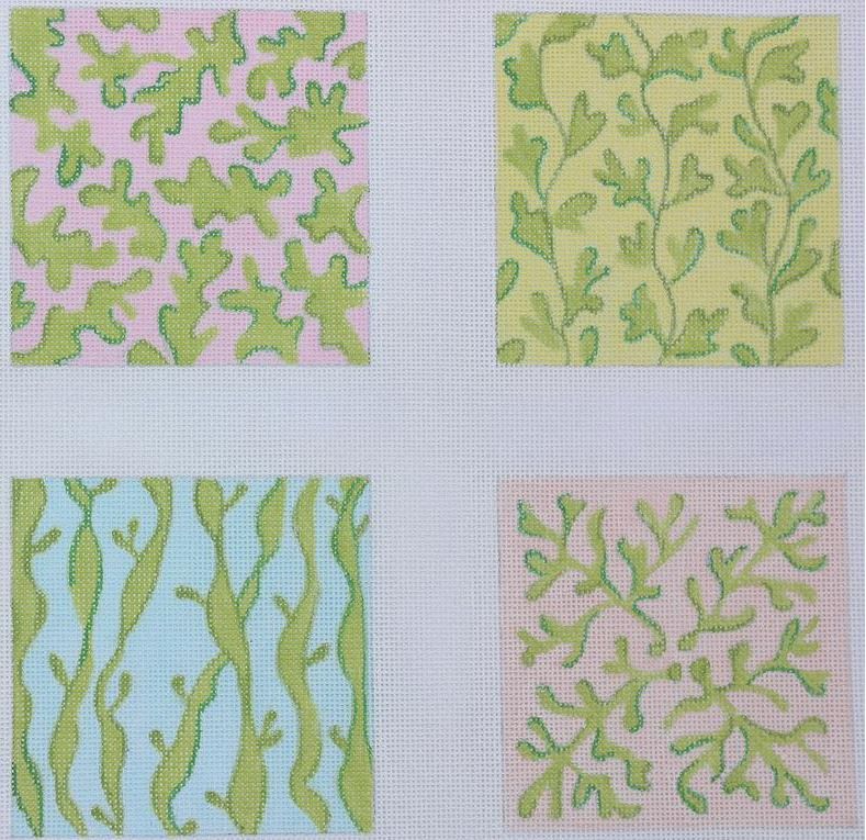 Kate Dickerson Needlepoint Collections Seaweed Coasters Set Needlepoint Canvas