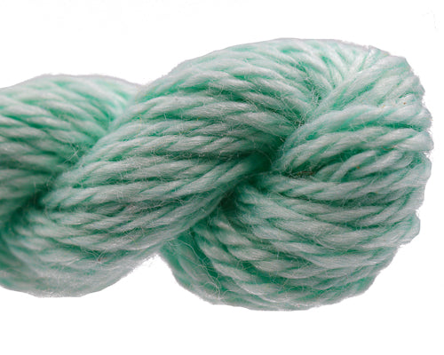 This is Silk & Ivory from Silk & Ivory in color 237 Mint Julep. A soft silk-wool blend in a wide range of colors. Excellent for pillows. Use as-is on 13 mesh.