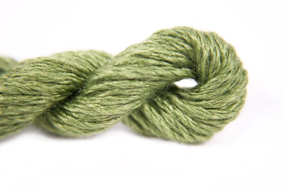 This is Silk & Ivory Trio from Silk & Ivory in color 029 Guacamole. A soft silk-wool blend in a wide range of colors. Excellent for pillows. Use as-is on 10 mesh, 2 strands on 13 mesh, 1 strand on 18 mesh.