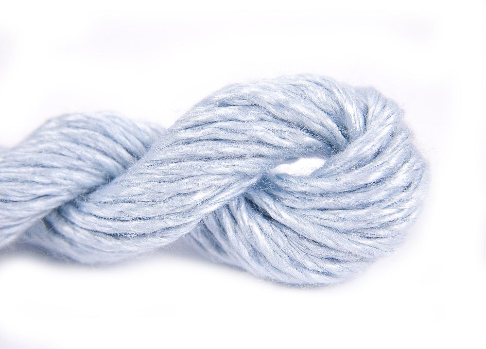 This is Silk & Ivory Trio from Silk & Ivory in color 106 Blue Yonder. A soft silk-wool blend in a wide range of colors. Excellent for pillows. Use as-is on 10 mesh, 2 strands on 13 mesh, 1 strand on 18 mesh.