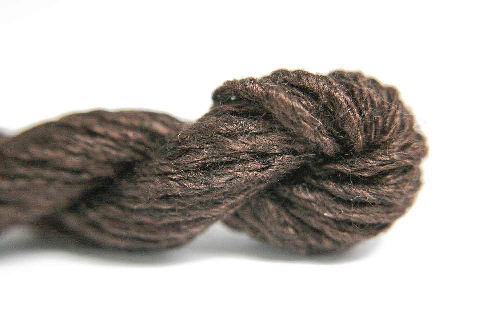 This is Silk & Ivory Trio from Silk & Ivory in color 112 Espresso. A soft silk-wool blend in a wide range of colors. Excellent for pillows. Use as-is on 10 mesh, 2 strands on 13 mesh, 1 strand on 18 mesh.