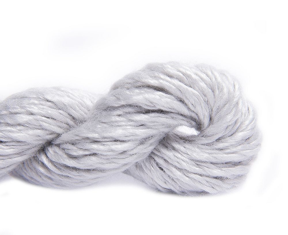 This is Silk & Ivory Trio from Silk & Ivory in color 205 Dolphin. A soft silk-wool blend in a wide range of colors. Excellent for pillows. Use as-is on 10 mesh, 2 strands on 13 mesh, 1 strand on 18 mesh.
