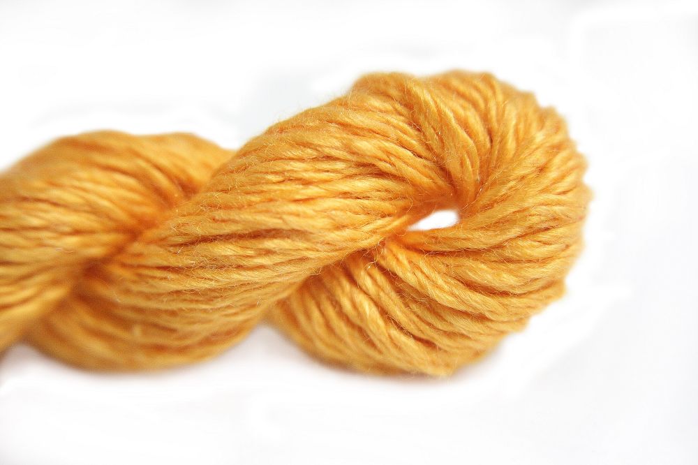 This is Silk & Ivory Trio from Silk & Ivory in color 214 Quince. A soft silk-wool blend in a wide range of colors. Excellent for pillows. Use as-is on 10 mesh, 2 strands on 13 mesh, 1 strand on 18 mesh.