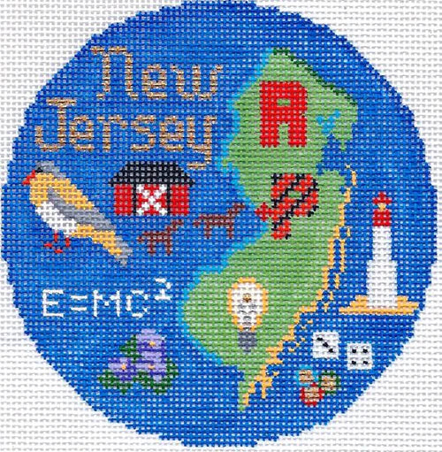 A beautiful hand painted needlepoint canvas from Silver Needle. These destination ornaments needlepoint canvases by Silver Needle are great mementos for places special to you This one is for the state of New Jersey.