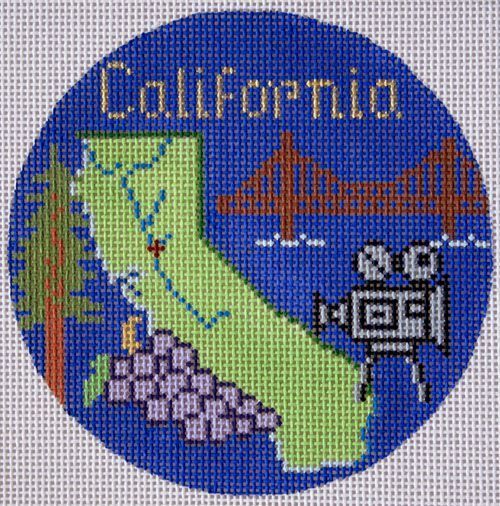 Silver Needle Travel Round California Ornament Needlepoint Canvas