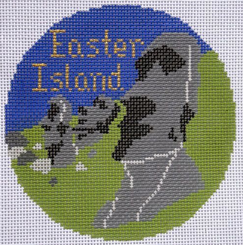 Silver Needle Travel Round Easter Island Ornament Needlepoint Canvas