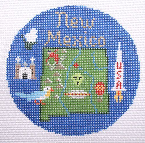 Silver Needle Travel Round New Mexico Ornament Needlepoint Canvas