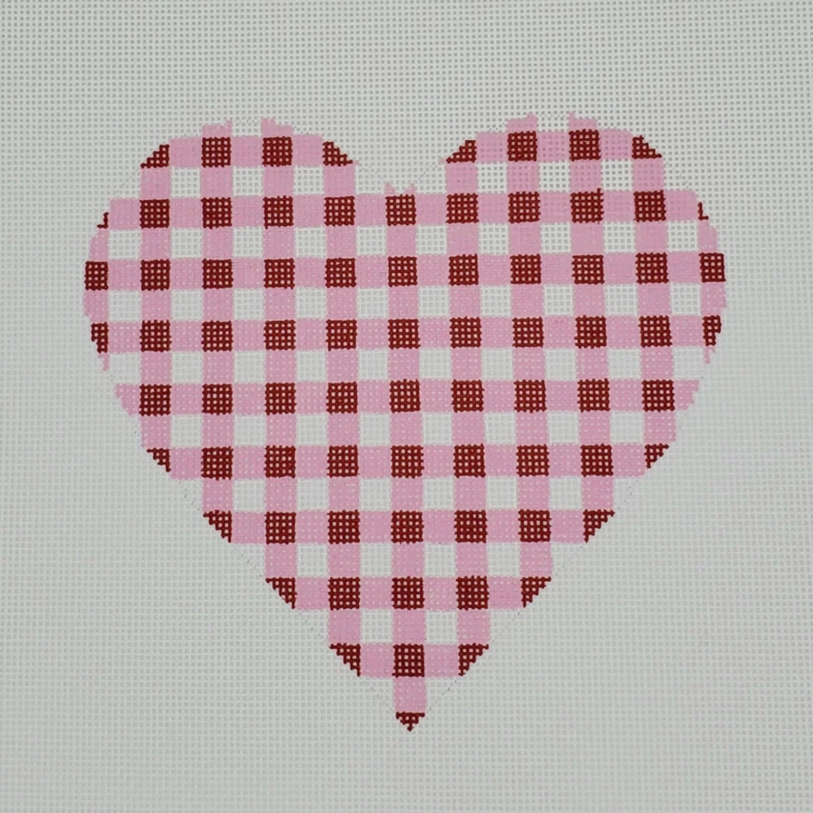 Silver Stitch Needlepoint Gingham Heart Needlepoint Canvas - Large Red