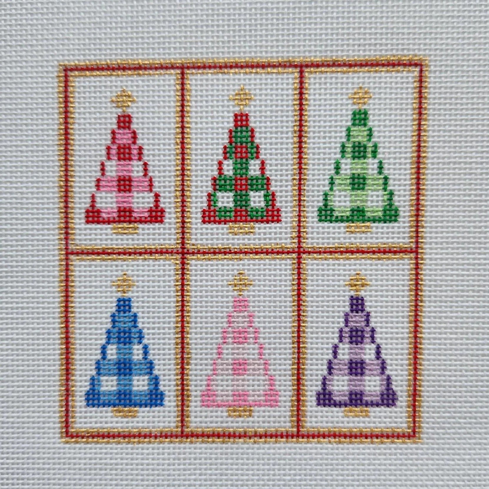 Silver Stitch Needlepoint Mini Gingham Trees Ornament Needlepoint Canvas