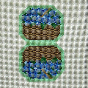This is a hand painted needlepoint canvas by SLS Needlepoint. It features a cute two-sided hydrangea basket with a green background. Canvas can also be finished as a bag charm or keychain.