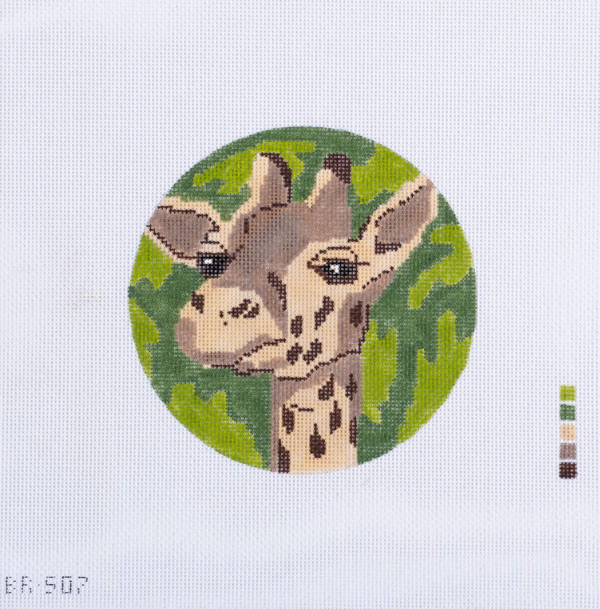 A beautiful hand painted needlepoint canvas from Rittenhouse Needlepoint. Small Giraffe Circular.