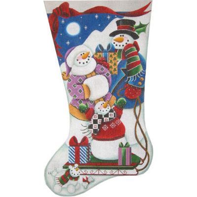 Rebecca Wood Designs Snow Sledding Stocking Needlepoint Canvas - 13M