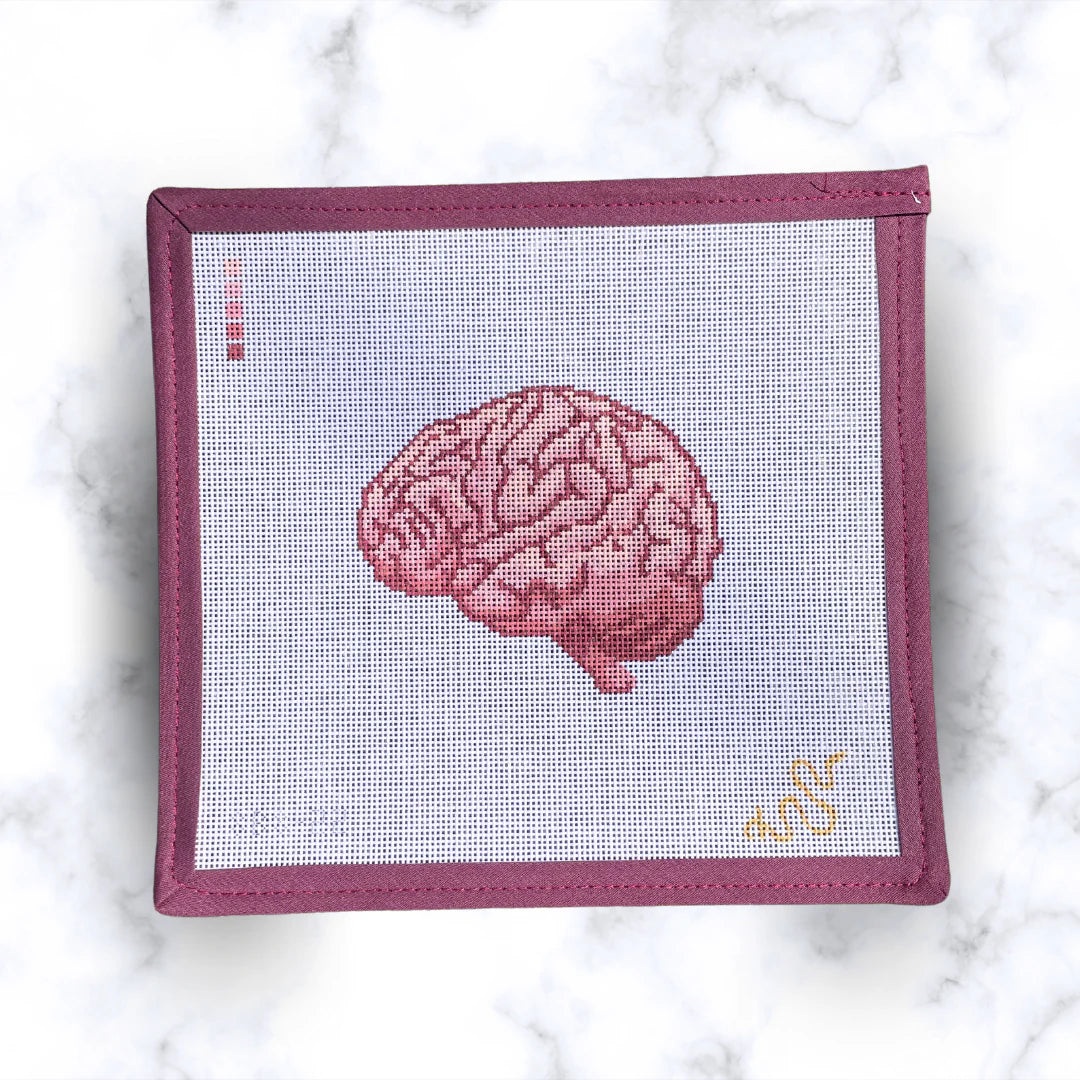 This hand painted needlepoint canvas by Spellbound Stitchery features an anatomical brain. The last part of ourselves we’d ever want to take for granted, our brains and minds work overtime to keep our bodies working. This needlepoint canvas, part of a series of human anatomy ornaments, celebrates the human brain and all of its delicate power.