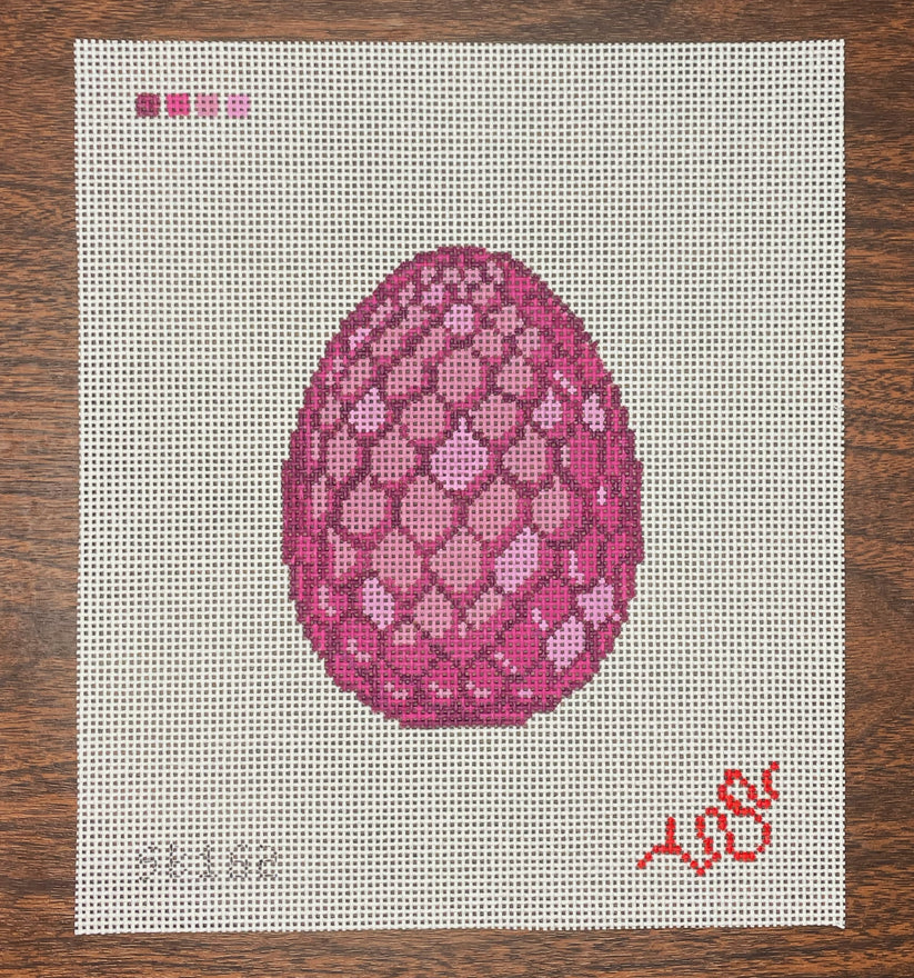 This is a hand painted needlepoint canvas by Spellbound Stitchery. It features a painting of a garnet colored dragon egg.