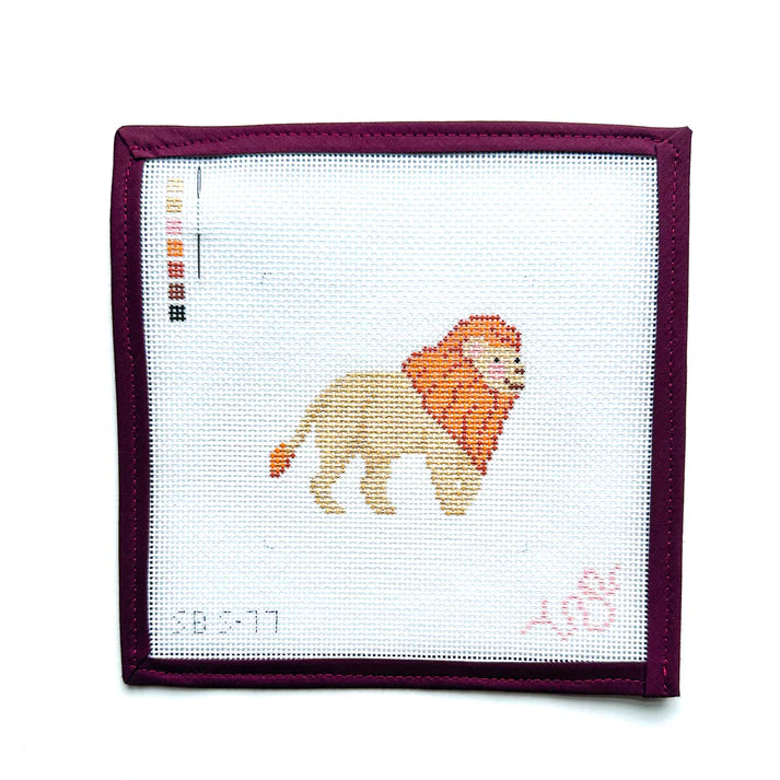 This is a hand painted needlepoint canvas by Spellbound Stitchery. It features a painting of a baby lion.