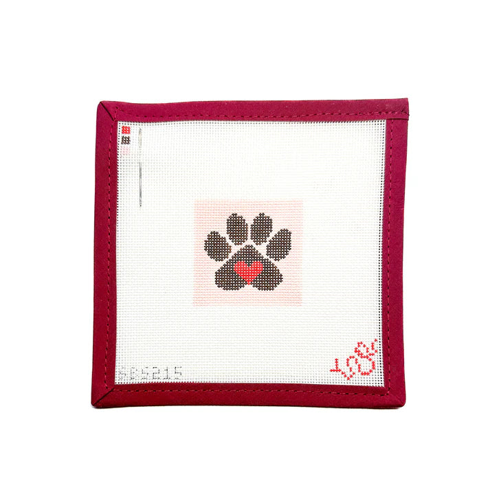 This is a hand painted needlepoint canvas by Spellbound Stitchery. It features a painting of a puppy's paw print.