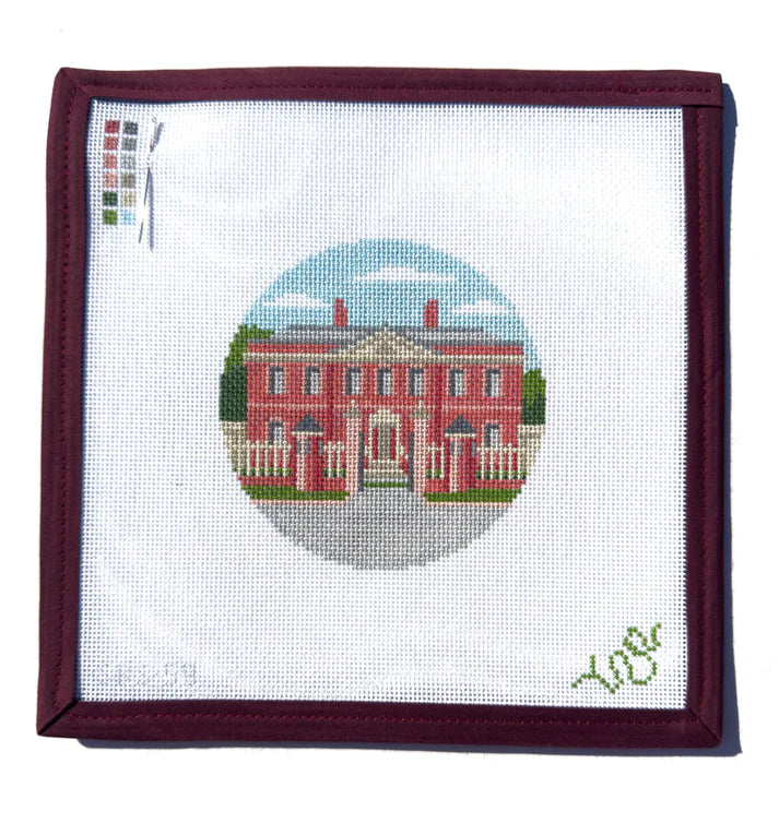 This is a hand painted needlepoint canvas by Spellbound Stitchery. It features a painting of North Carolina's historical Tryon Palace.