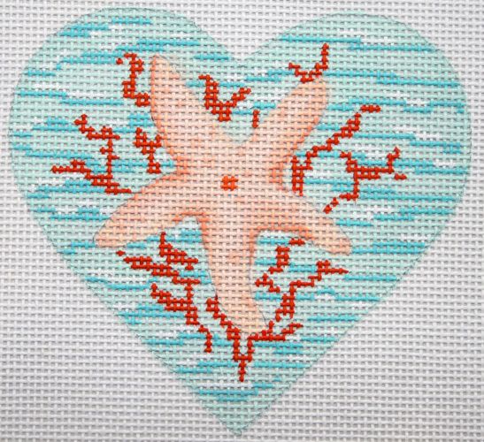 Kate Dickerson Needlepoint Collections Starfish & Coral On Sea Heart Needlepoint Canvas