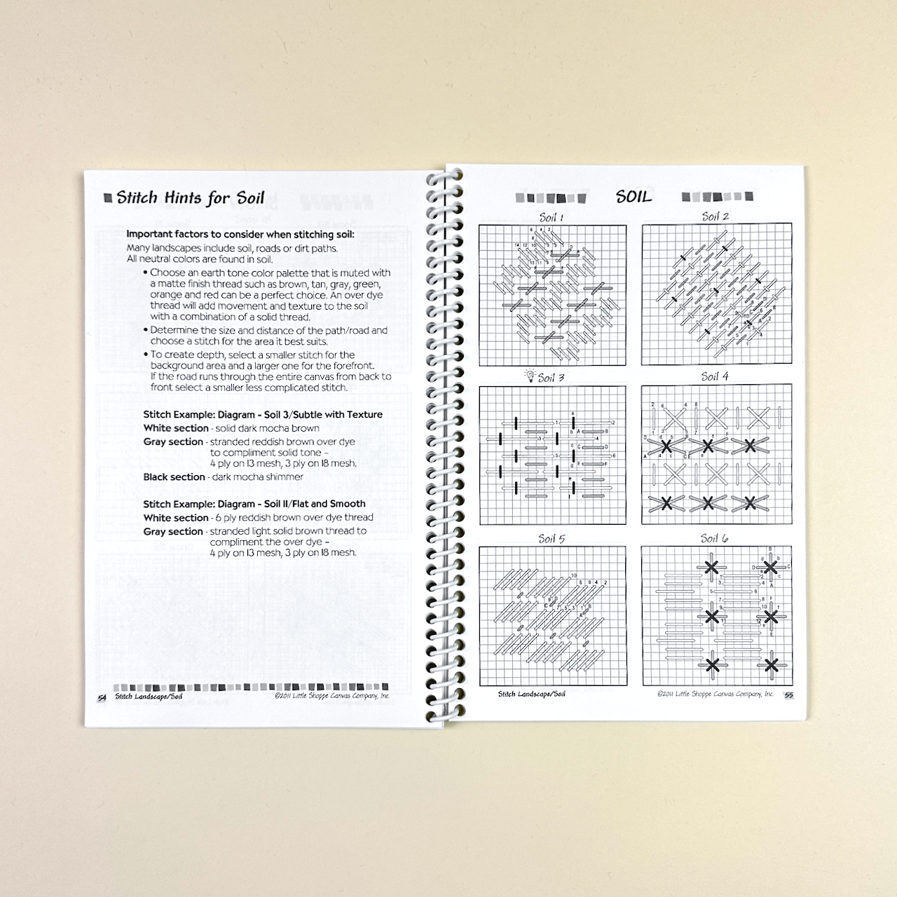 This needlepoint stitch book by Stacey Tombros is much more than just a collection of stitches. It is divided into categories of common landscape features such as sky, water, grass, trees, etc. Each section begins with tips for creating beautiful effects for that category such as color suggestions, stranding tips, tips on how to select stitches and more. The stitch diagrams themselves include numbering for sequence as well as shading to suggest the use of multiple colors. This is an easy to navigate book full of unique stitches!