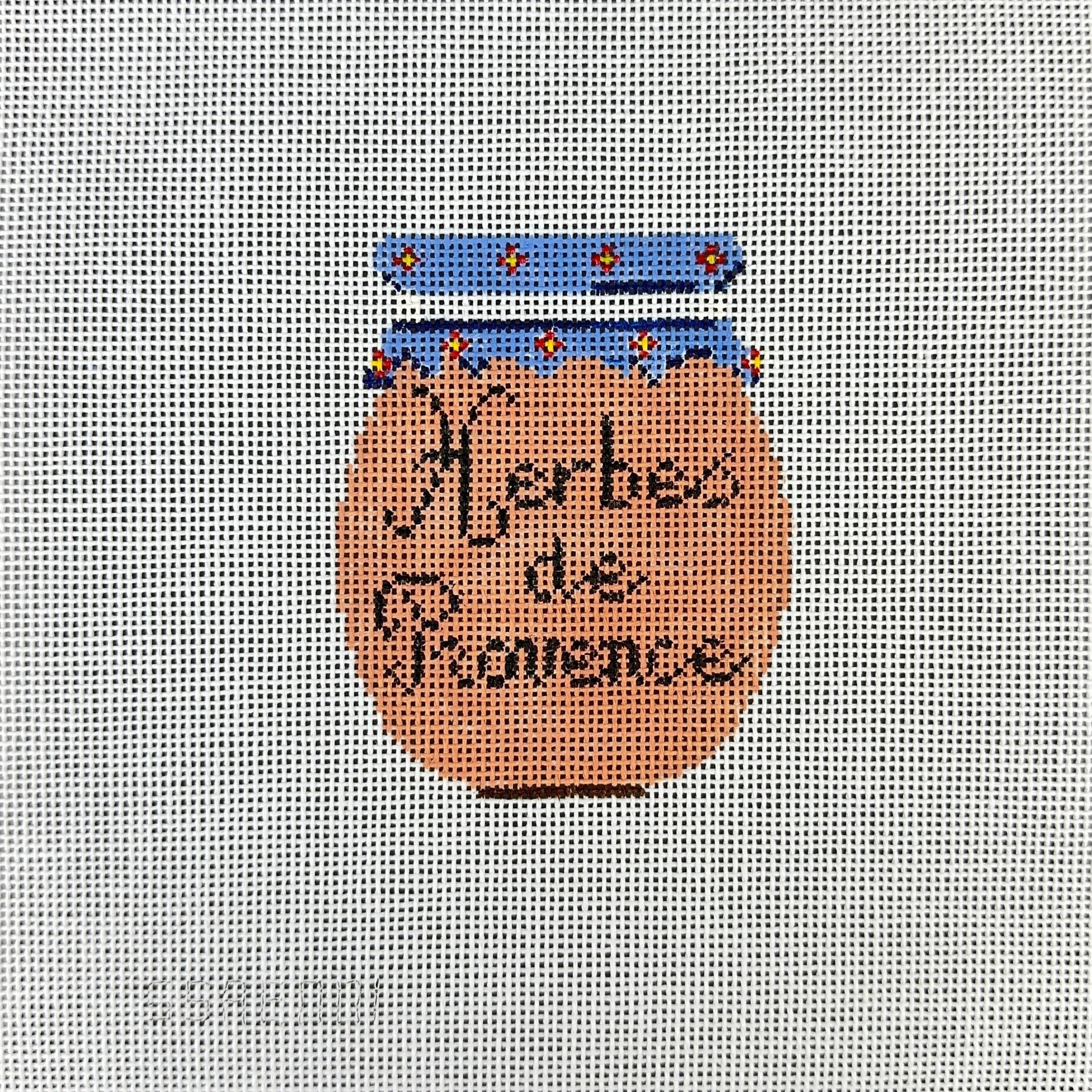 Transport yourself to the quintessential taste of France with the terracotta pot of Herbes de Provence on a hand painted needlepoint canvas by Alli Eagan Designs. Originating in southeastern France, Herbes de Provence became familiar in America in the 1970s when Julia Child taught home chefs around the world about French cooking. Made of fennel, marjoram, parsley, rosemary, tarragon, and thyme, these herbs in a darling terracotta pot is the perfect addition to any kitchen.