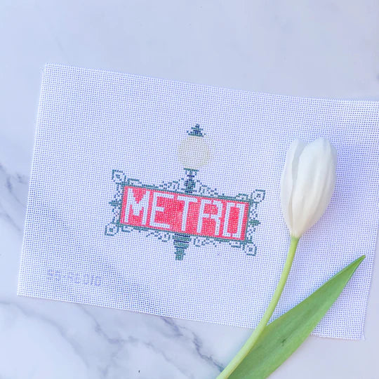 The Paris Metro and its beautiful signs are works of art history that appear all throughout the city. This beautiful vintage Paris metro sign by Alli Eagan Designs is the perfect cosmopolitan touch to your needlepoint collection.