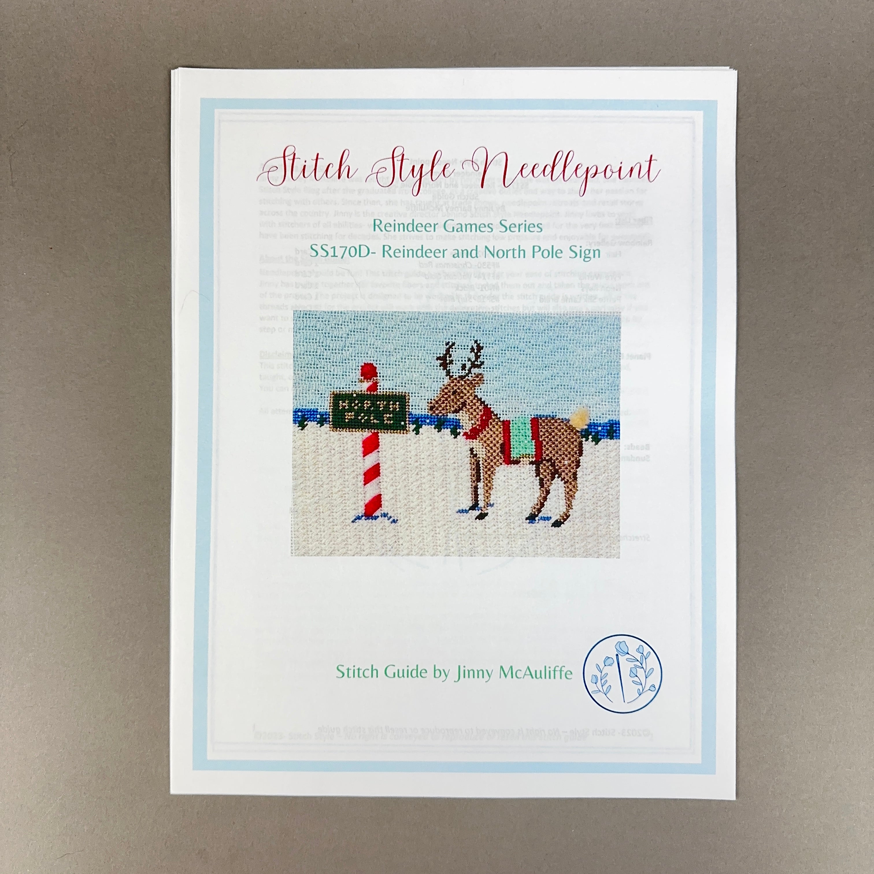 Stitch Style Reindeer Games Series: Reindeer and North Pole Sign Needlepoint Canvas