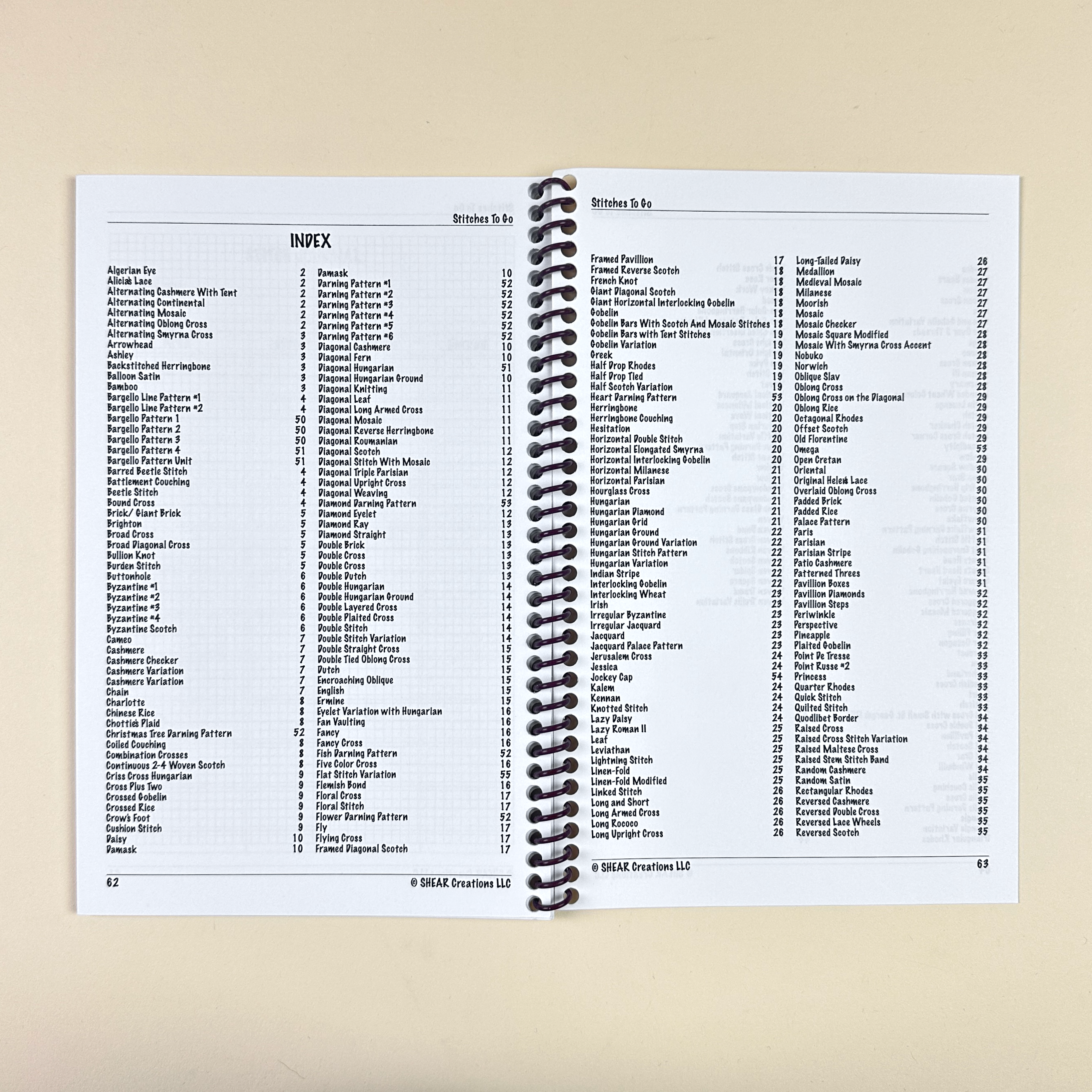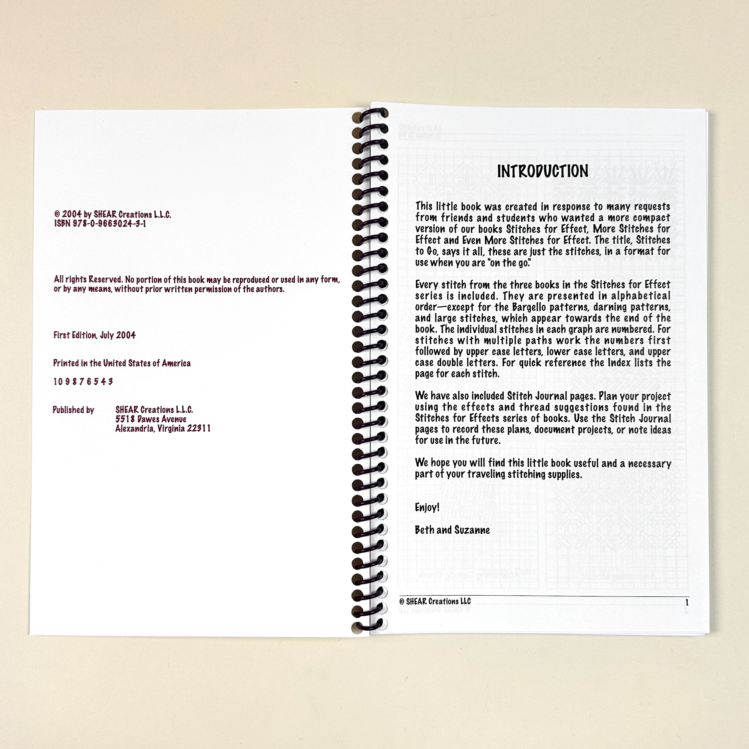 By Suzanne Howren and Beth Robertson. Spiral-bound. Just the stitches, in a format for use when you're "on the go." It contains all the stitch diagrams from the 3 Stitches For Effect books plus Stitch Journal pages to use for recording projects, plans or ideas. This little book is a necessary addition to your traveling stitching supplies.