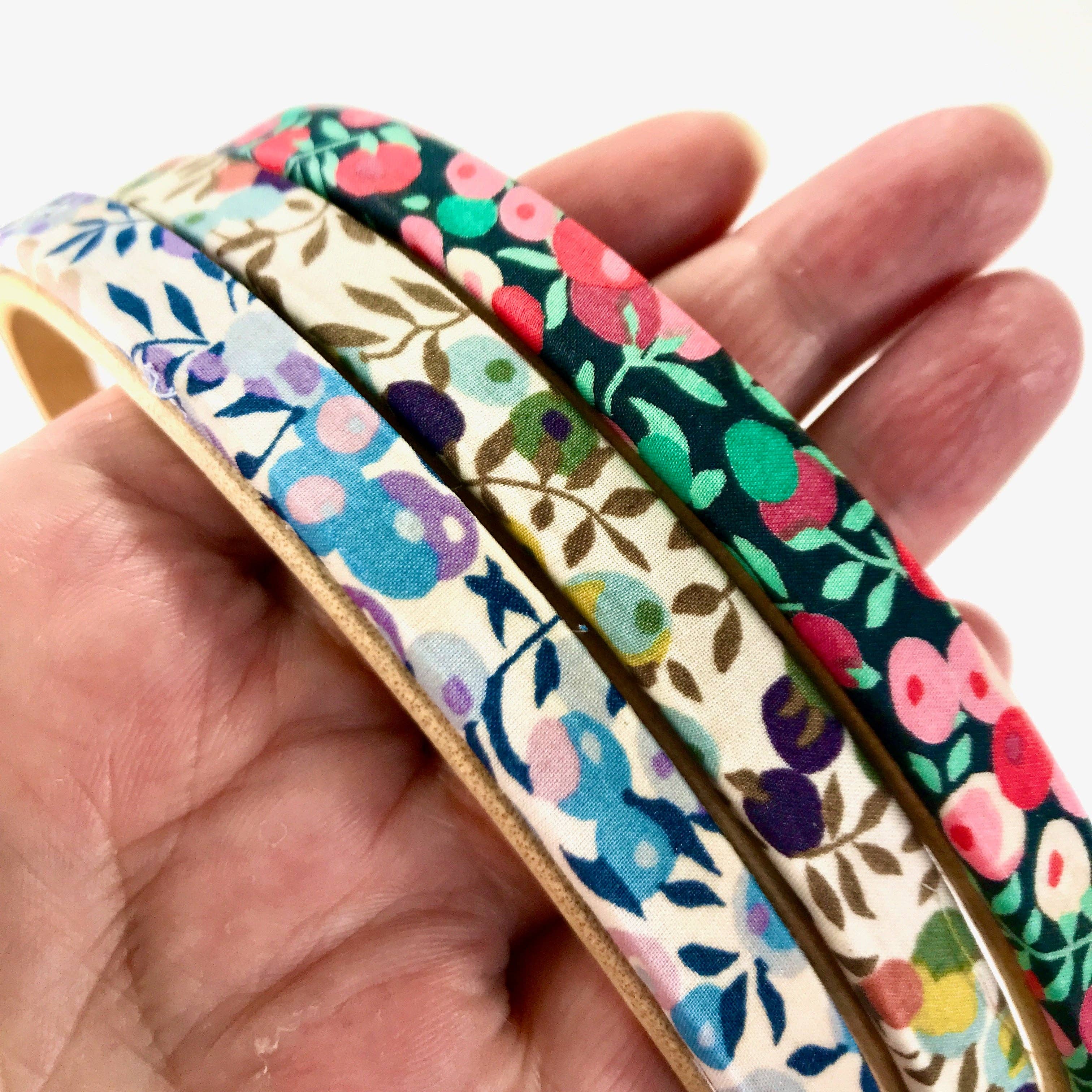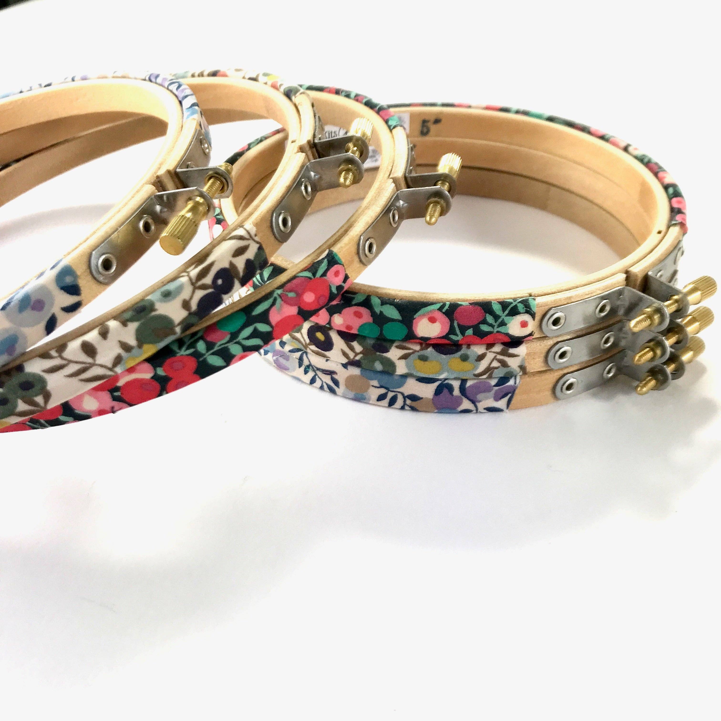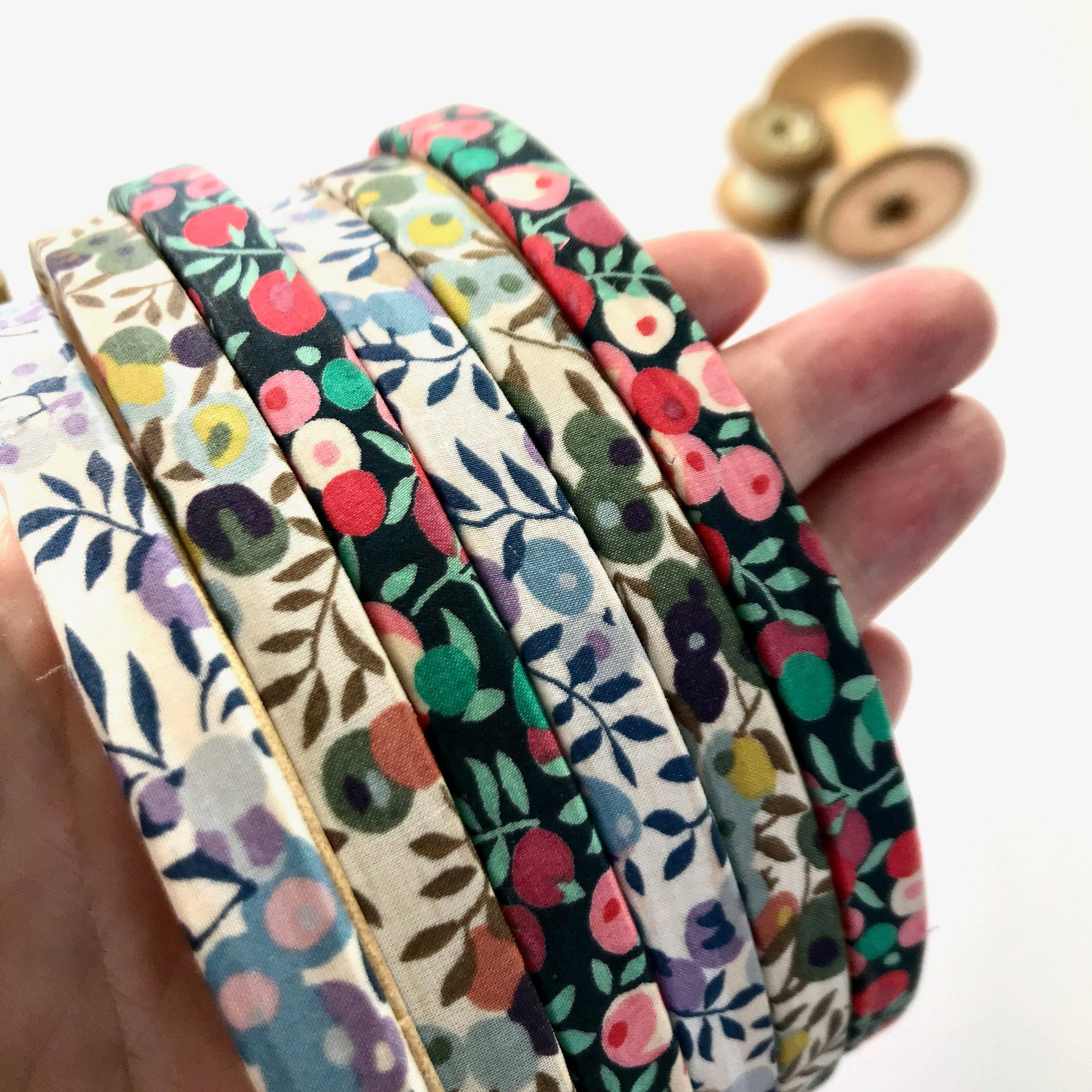 These high quality 6" wooden embroidery hoops from Stitchkits Crafts have been hand-covered in Liberty fabric. These embroidery hoops feature the beautiful Liberty of London 'Wiltshire Berry' print. The hoops are high quality and durable, so they can be used either as a frame for a textile wall hanging of as a working needle craft hoop. Sold individually. Choose from three different color ways. Spools not included.