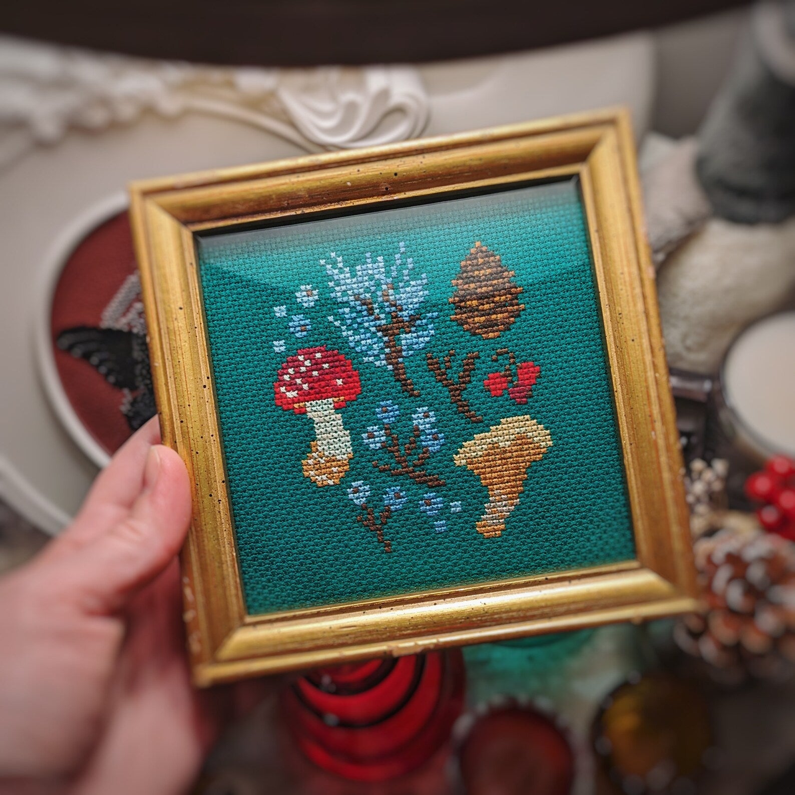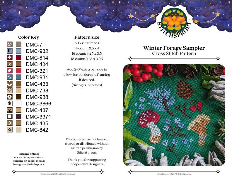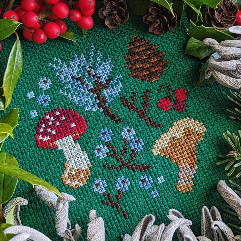 This cross stitch pattern by StitchSprout features a harvest of winter foragables.