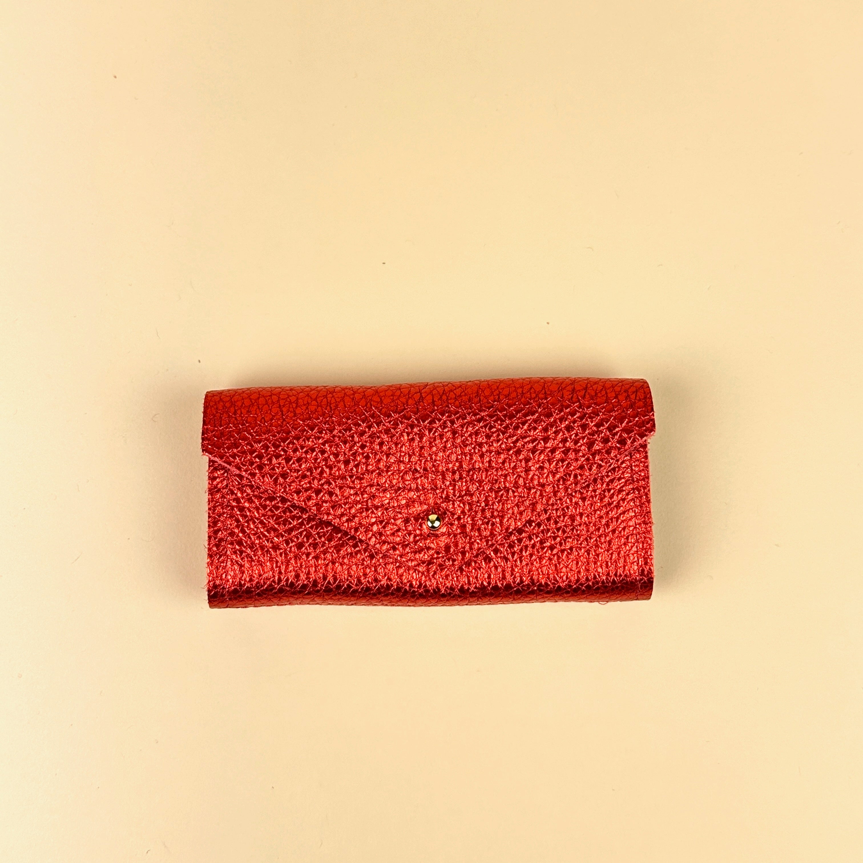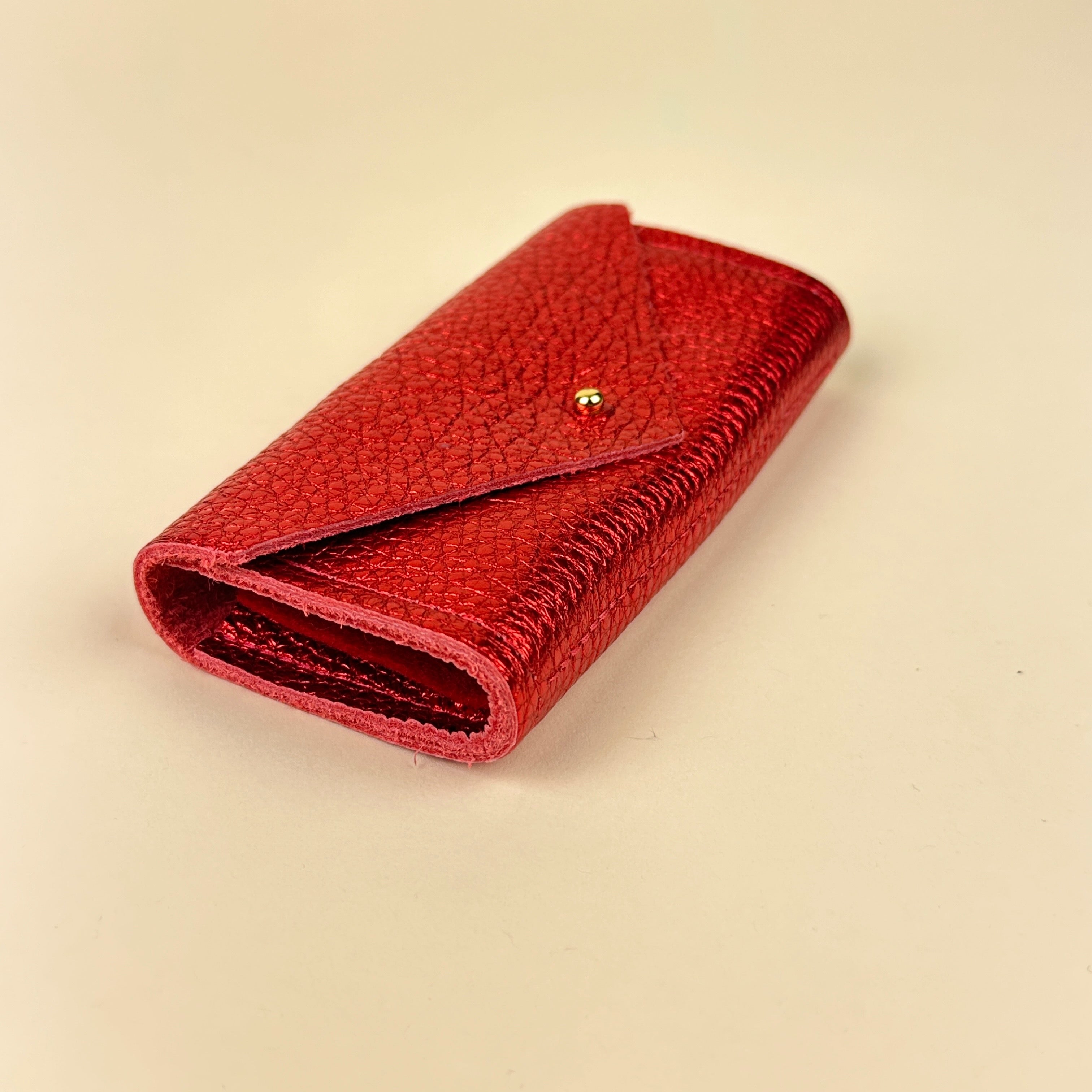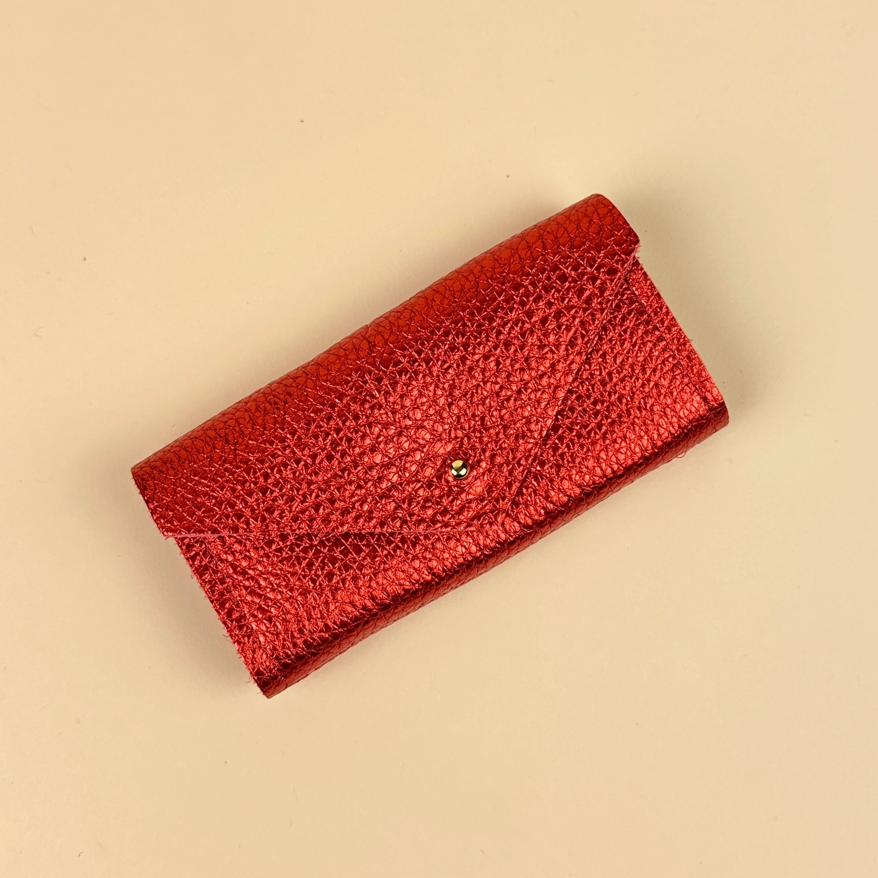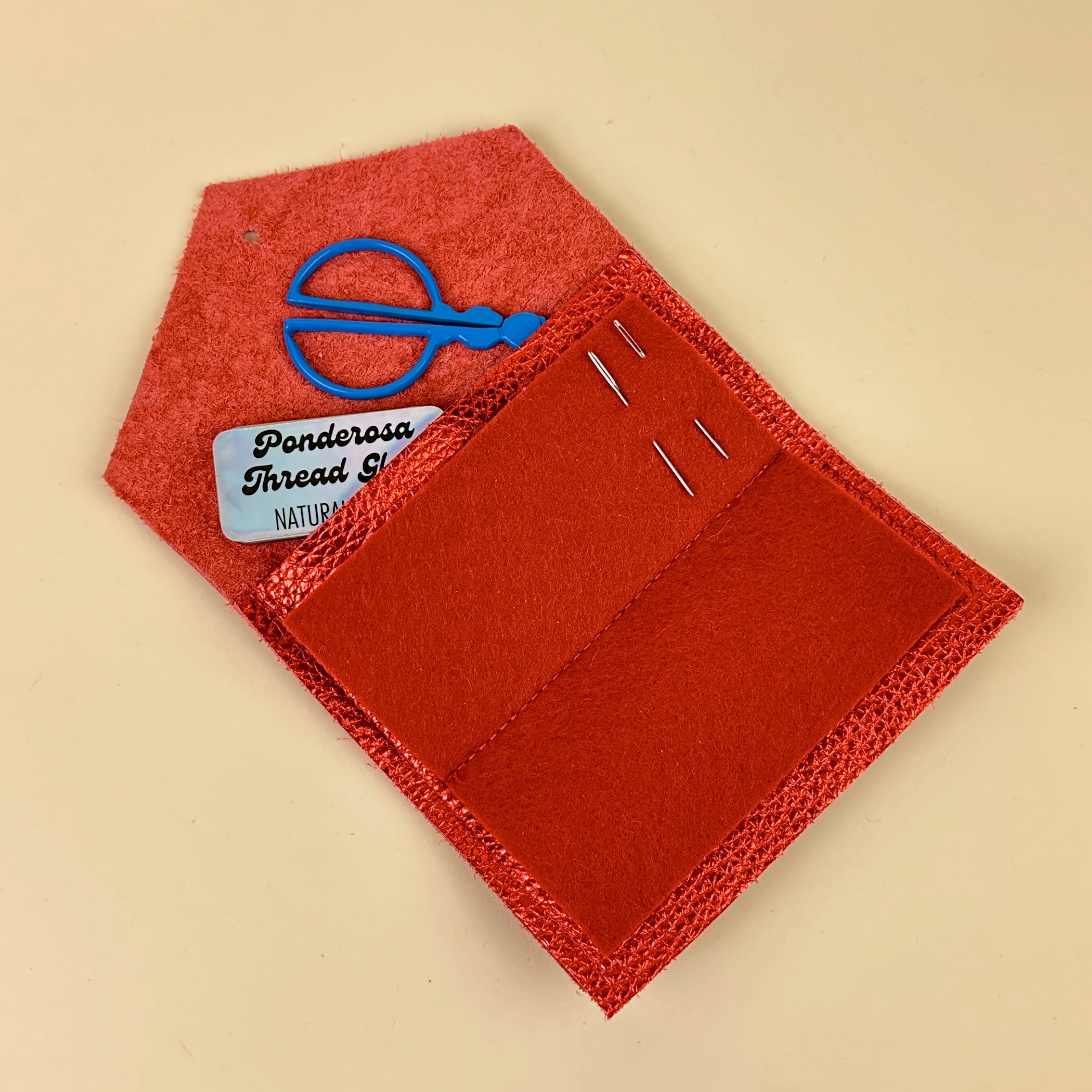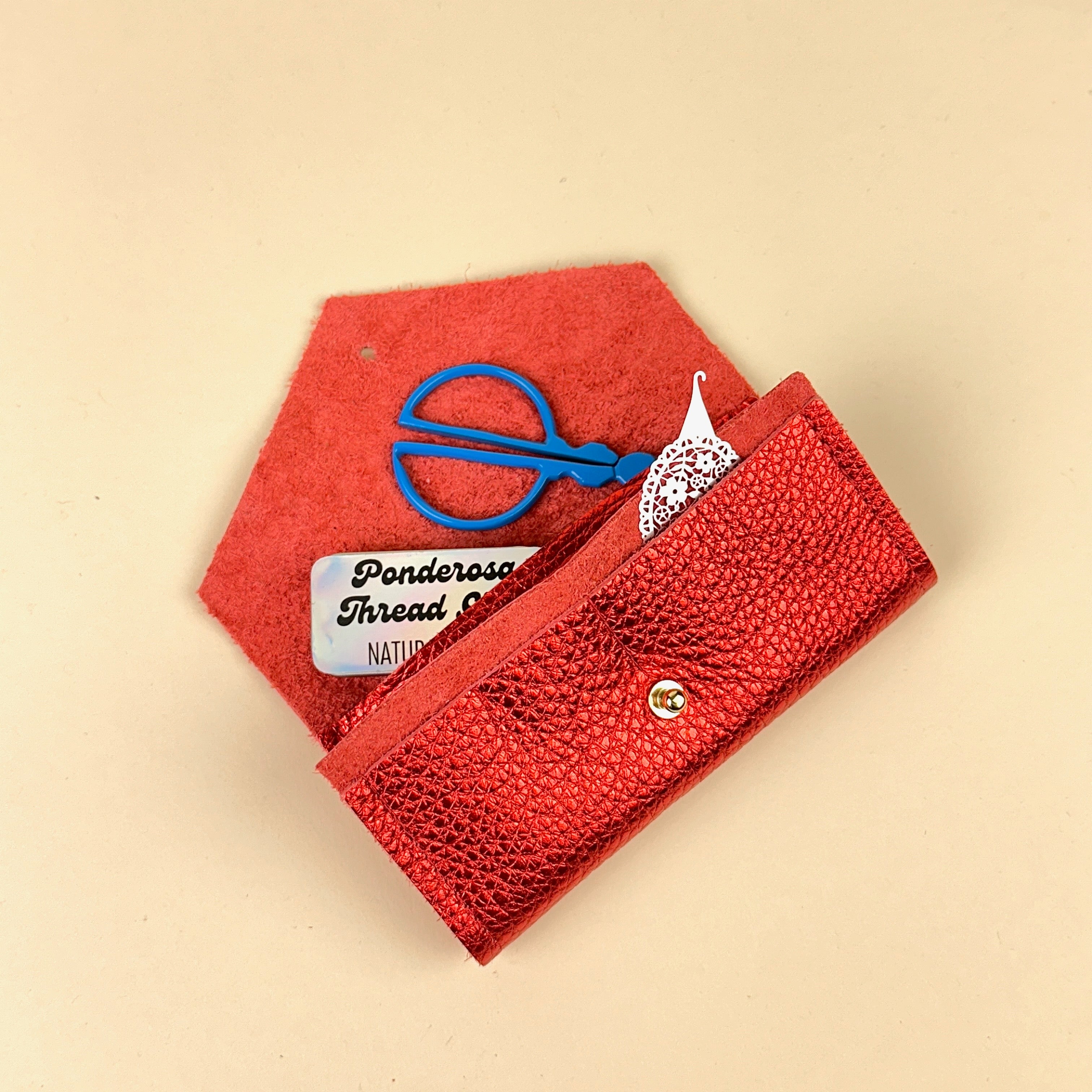 This gorgeous needles and notions case is hand crafted in Cornwall, UK by Studio Lowen (fun fact - Lowen means joy in Cornish!). Made of soft Italian leather in metallic red, it features: felt for your needles, a larger pocket which is perfect for a pair of embroidery scissors, and two smaller pockets that are great for a needle thread, needle tugger, and other petite tools or notions. Needles and tools sold separately.