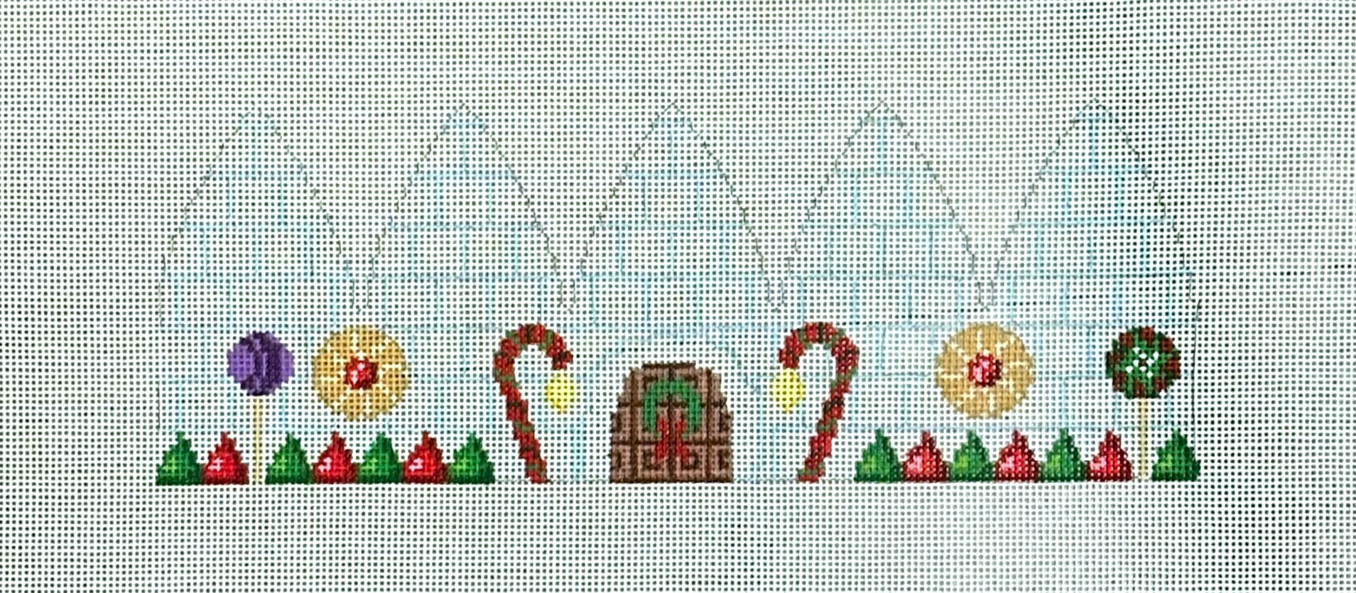 This hand painted needlepoint canvas by Susan Roberts is designed to be finished into a 3D igloo with a marshmallow design.