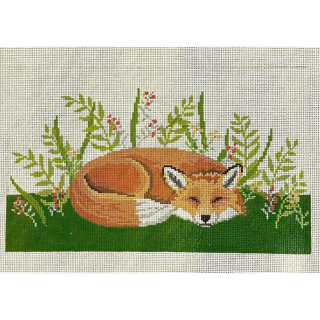 This hand painted needlepoint canvas from Susan Roberts Needlepoint features sleeping fox.