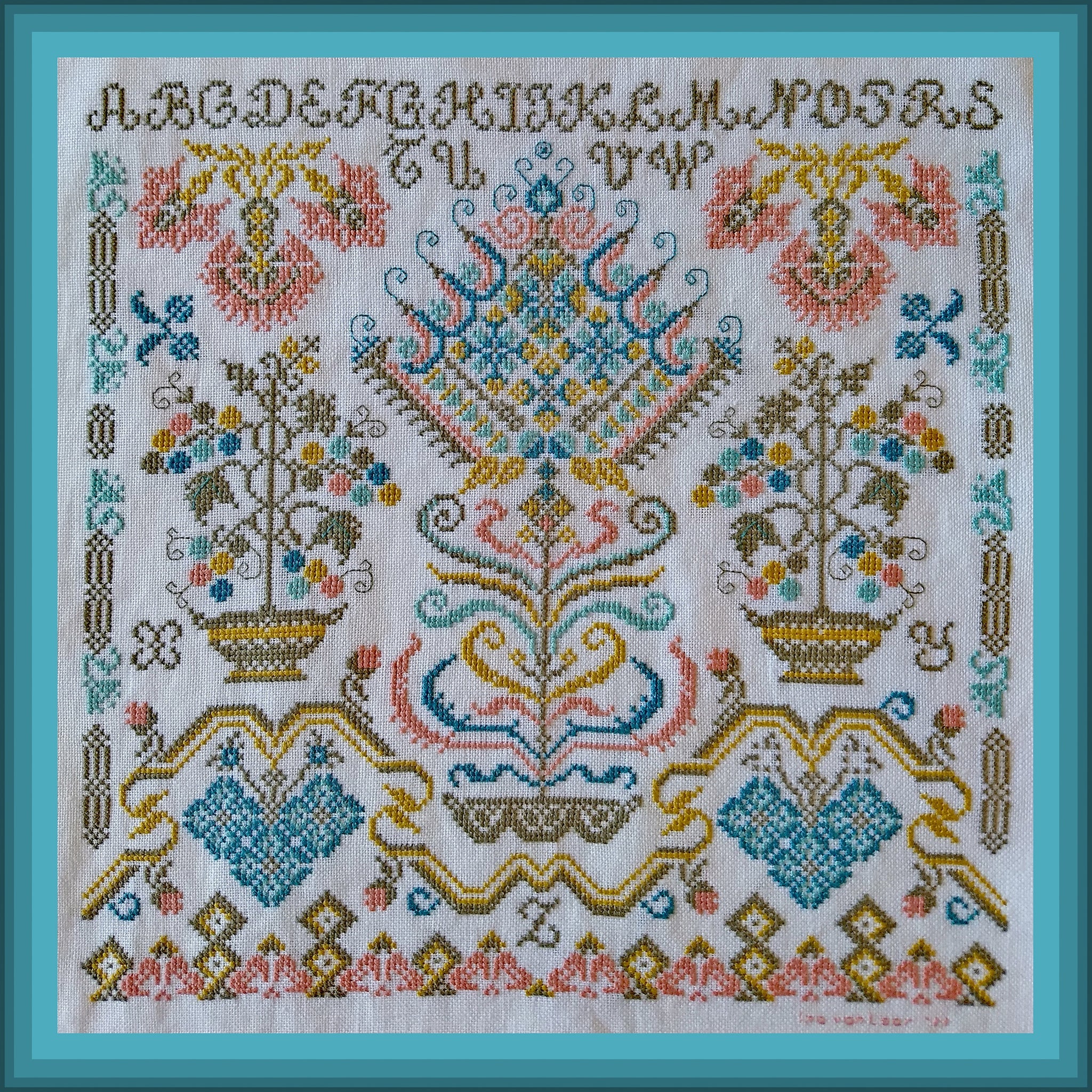This is a cross stitch pattern design by Tempting Tangles Designs. It features a beautiful design with several whimsical potted trees in frame.