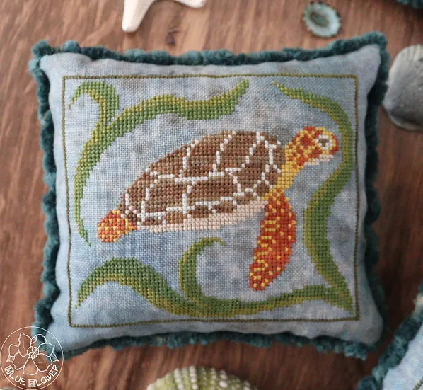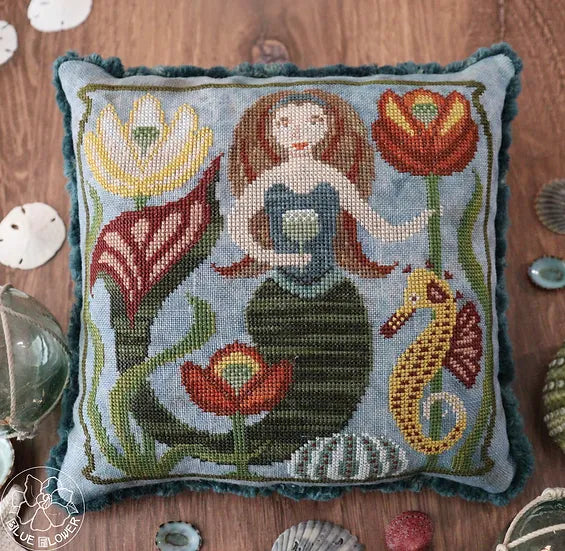 This Autumn Mermaid cross stitch pattern by The Blue Flower is a celebration of sea life (real and imagined) in lovely fall colors. As stitched, it features DMC, Weeks Dye Works, Gentle Art, and Classic Colorworks floss.