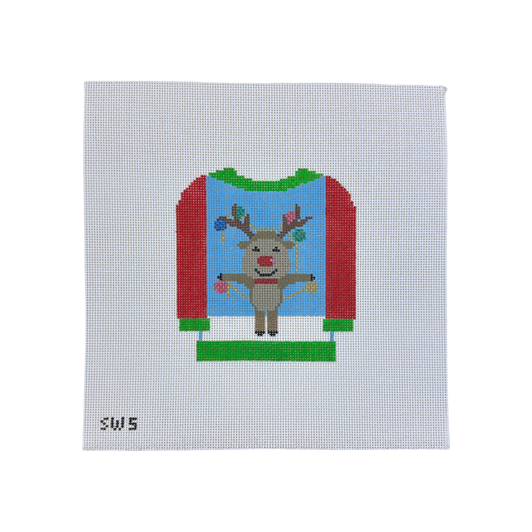 This hand painted needlepoint canvas by The Collection Designs features a fun Christmas sweater with a reindeer.