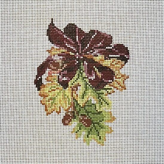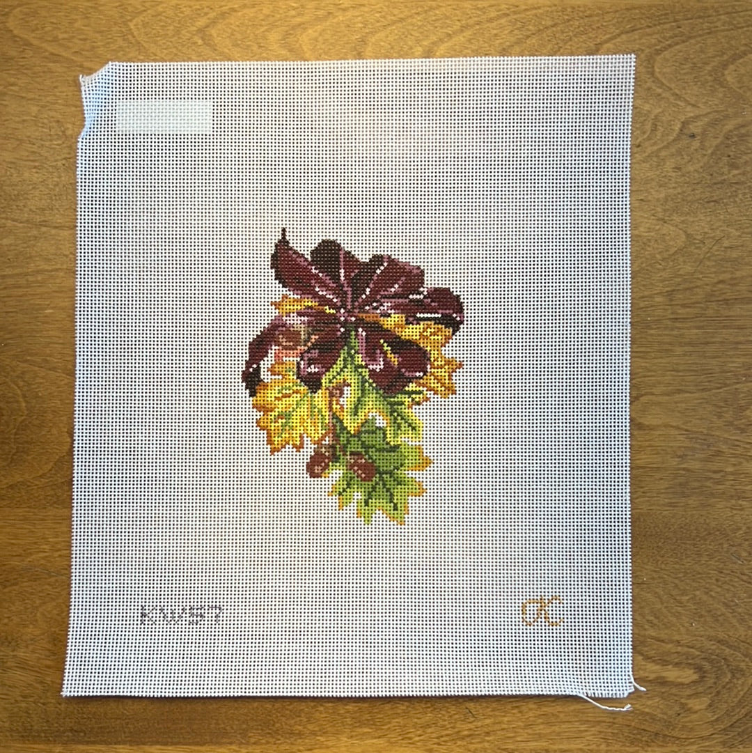 This hand painted needlepoint canvas from The Gingham Stitchery features handsome fall foliage in warm hues.