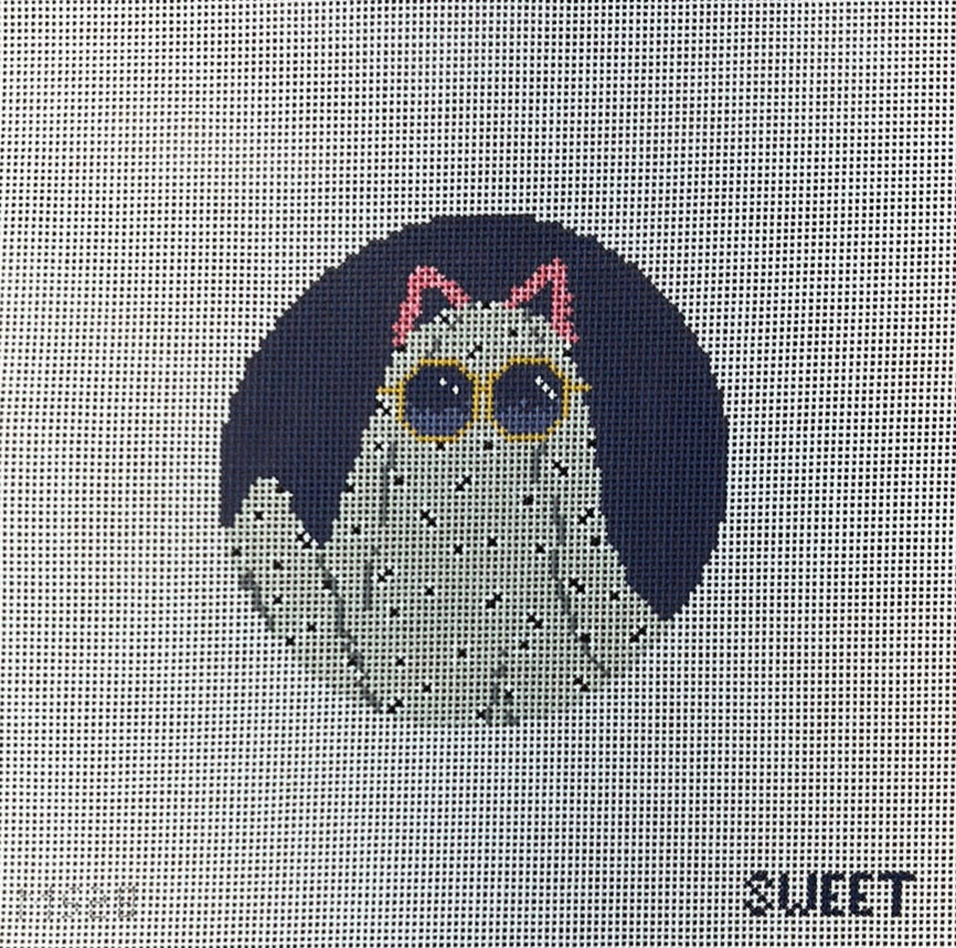 This hand painted needlepoint canvas from The Gingham Stitchery features an "Anti-Hero" inspired ghost wearing cat ears.