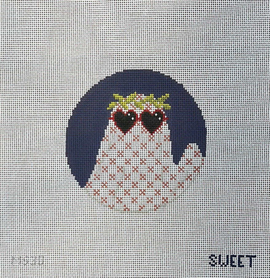 This hand painted needlepoint canvas from The Gingham Stitchery features an "Anti-Hero" inspired ghost wearing heart glasses and a leafy crown.