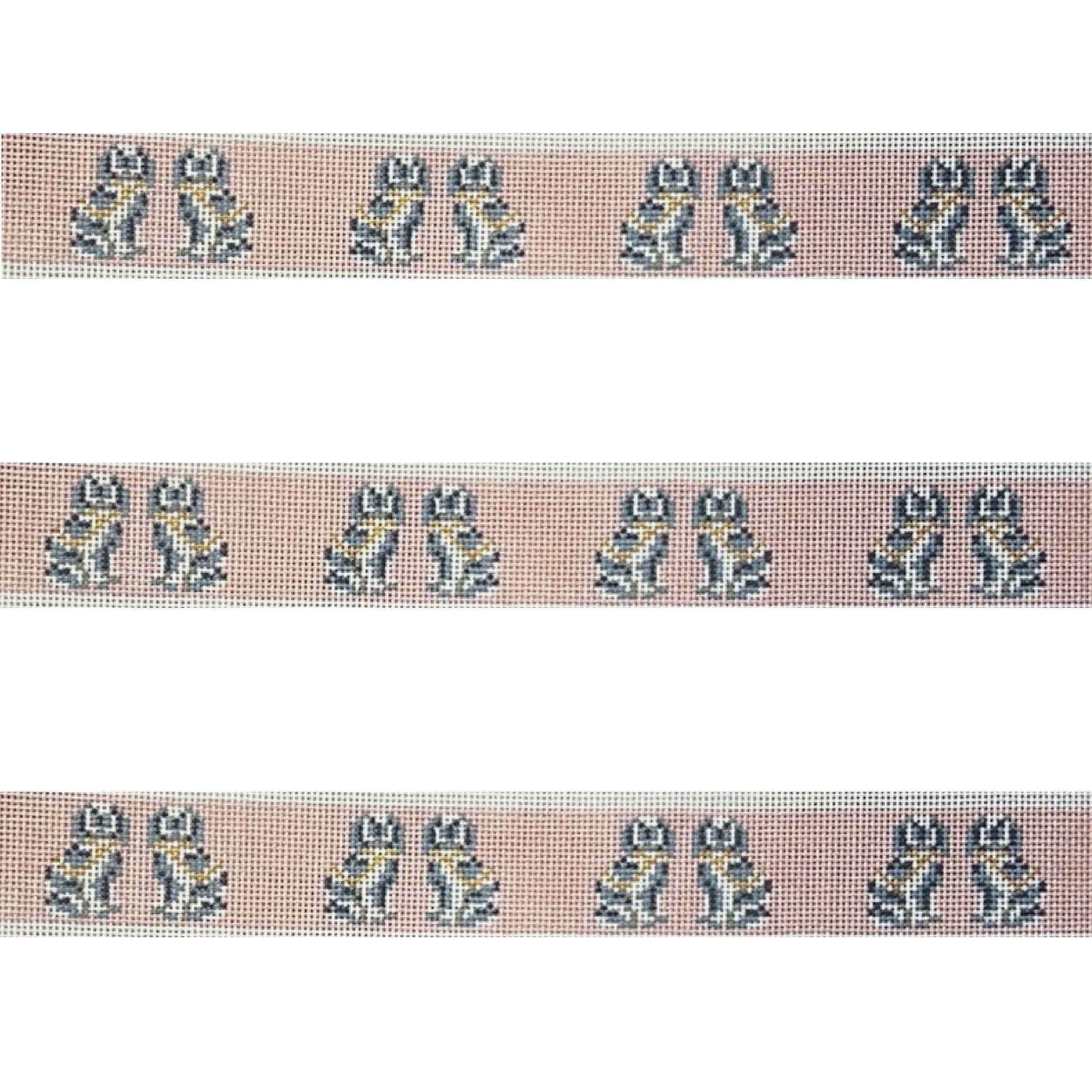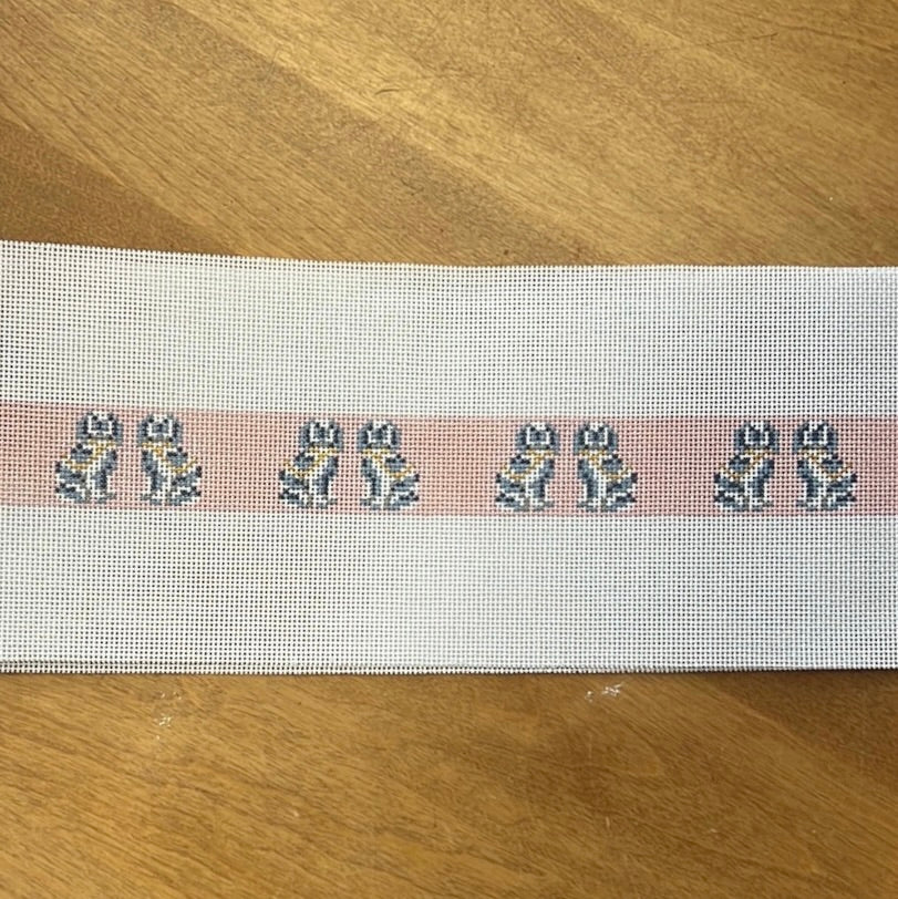 This hand painted needlepoint belt canvas from The Gingham Stitchery features classic Staffordshire dogs.