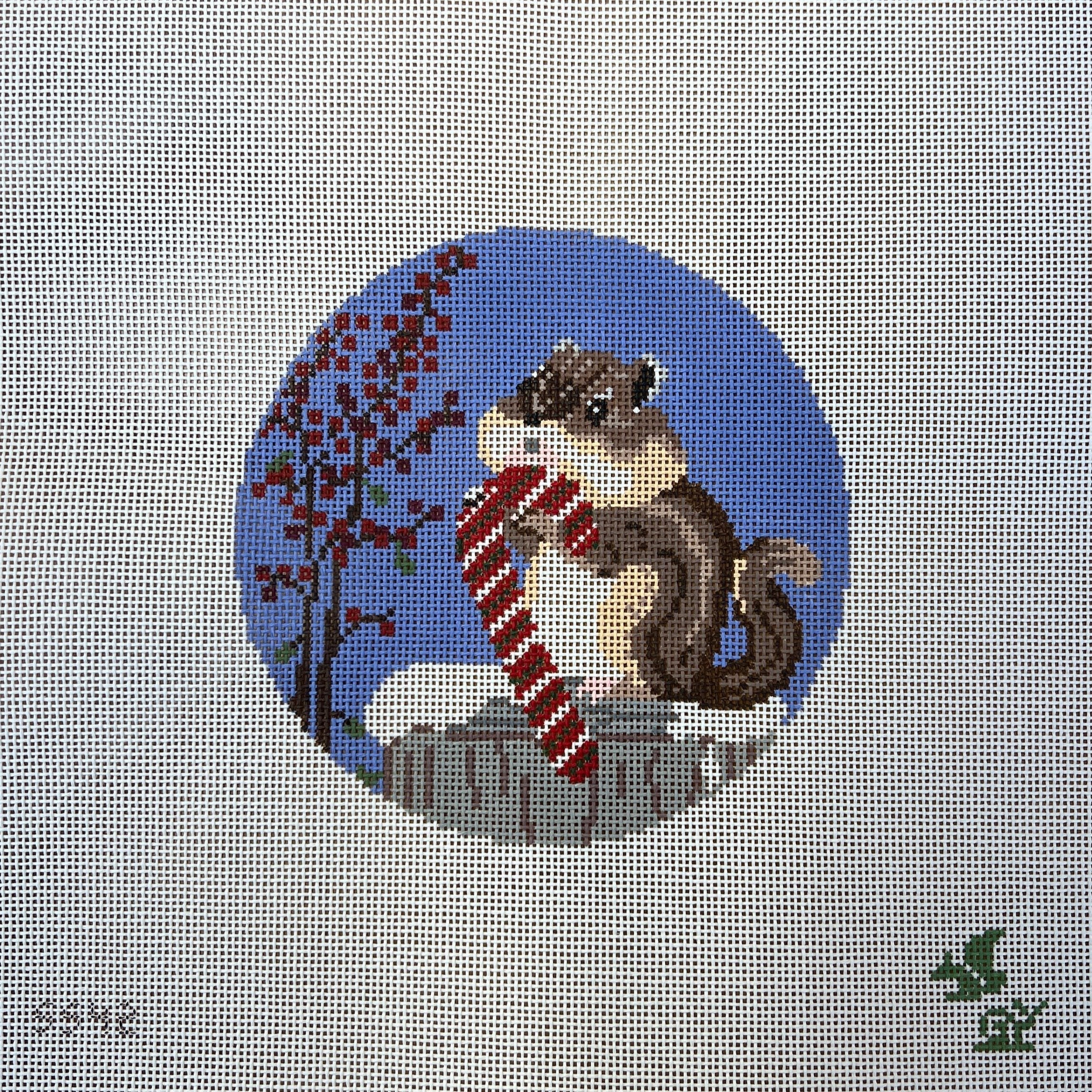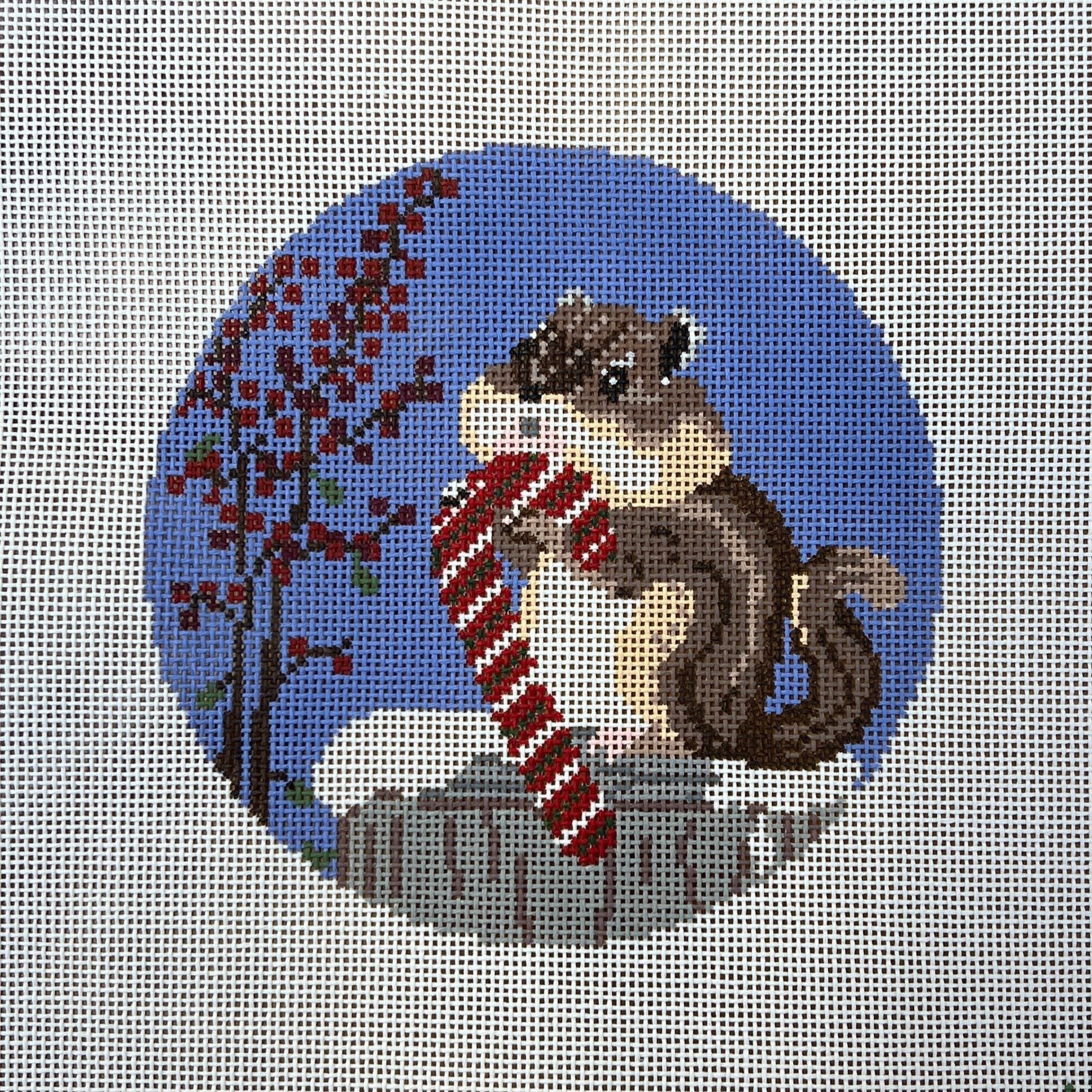 This is a hand painted needlepoint canvas by The Squirrel and The Snail from The Gingham Stitchery.