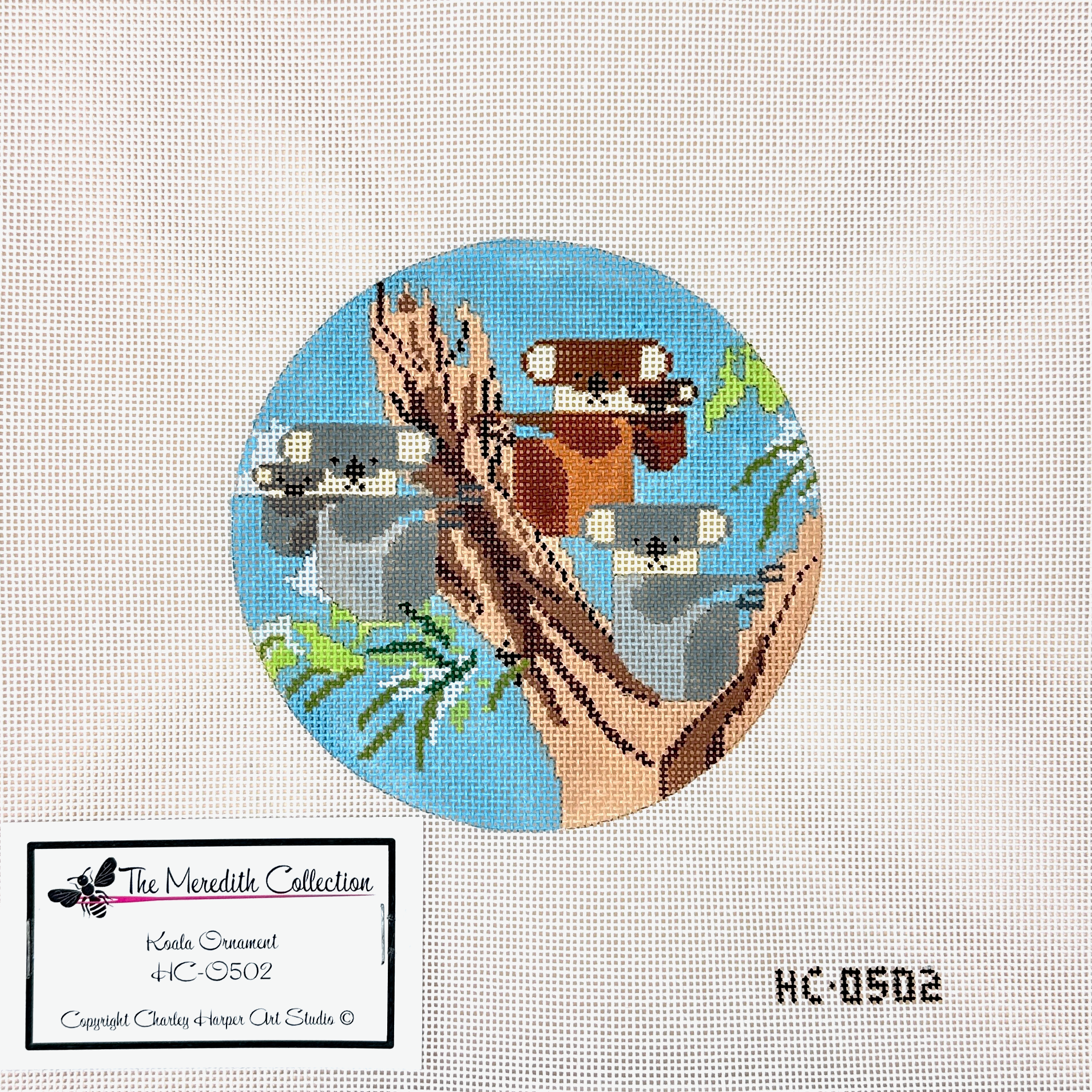 This needlepoint canvas by Charley Harper from The Meredith Collection features a koala relaxing in a tree.