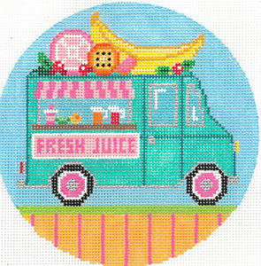 This hand painted needlepoint canvas from The Meredith Collection features a fresh squeezed juice food truck.