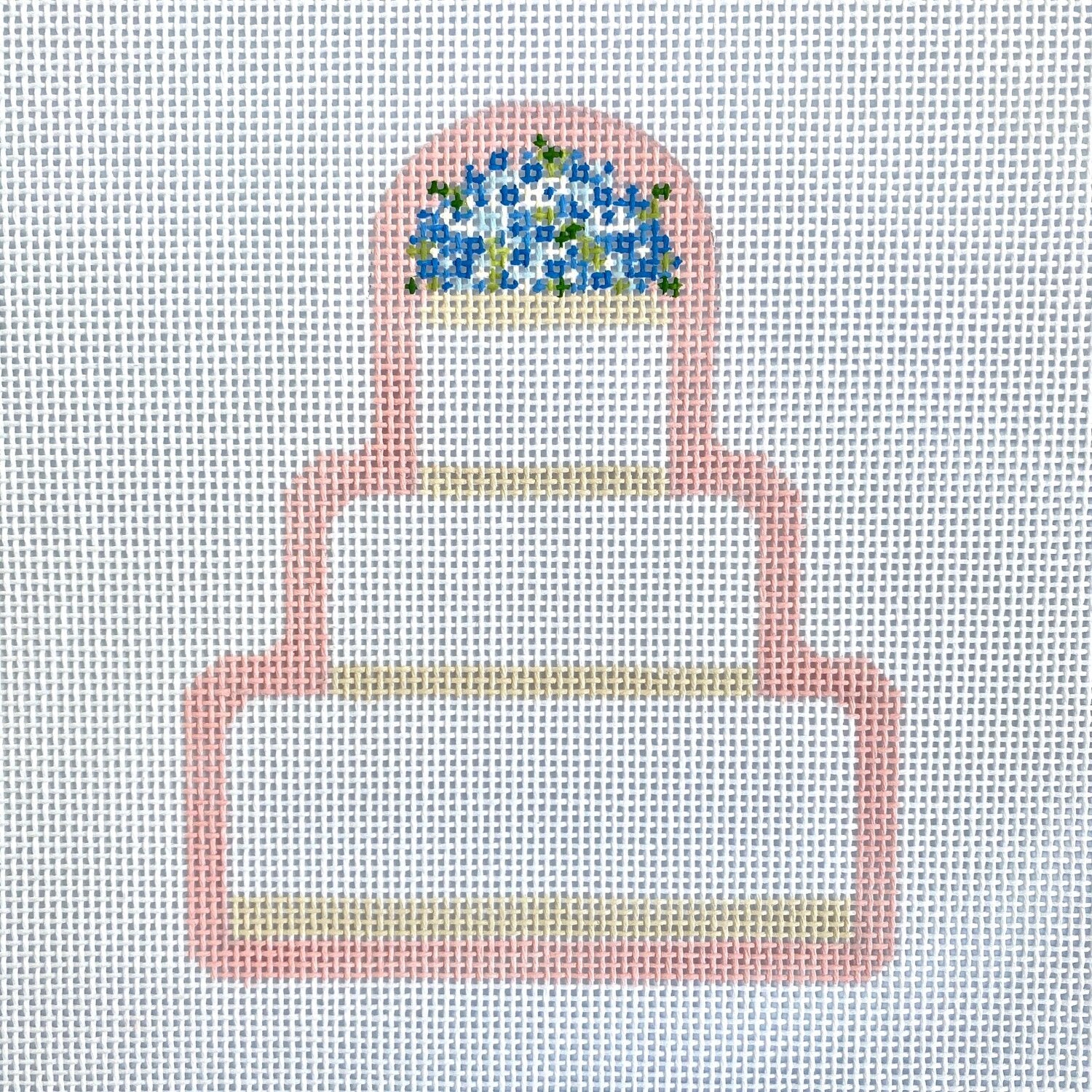 This hand painted canvas by The Plum Stitchery features an elegant wedding cake topped with lovely flowers. This is a great canvas to personalize with initials and a wedding date. Ask us about having these additions custom painted.